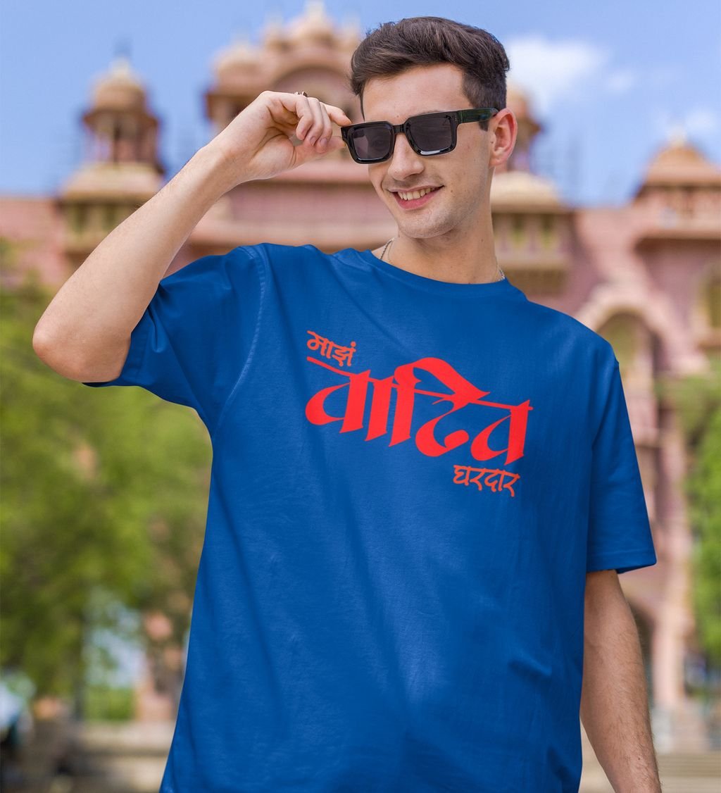 Maratha Family Blue Round Neck Cotton Half Sleeved Men T Shirt with Printed Graphics