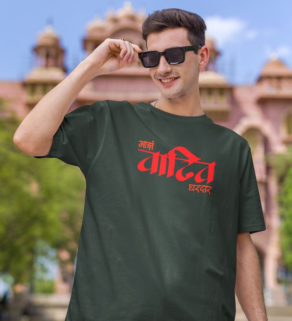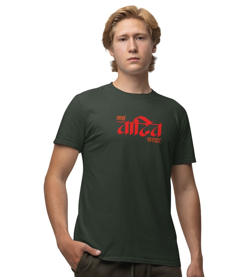 Maratha Family Green Round Neck Cotton Half Sleeved Men T Shirt with Printed Graphics