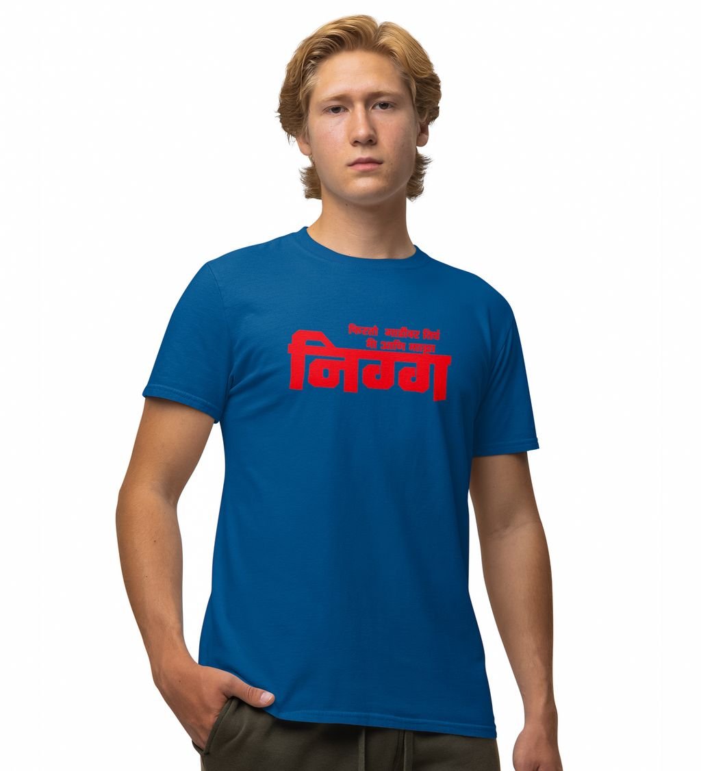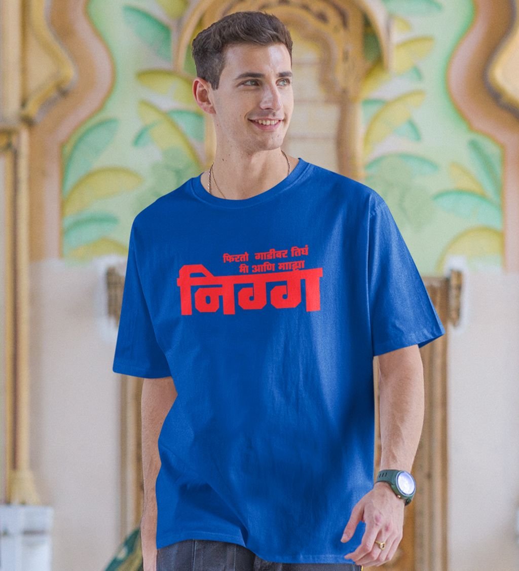 Marathi Frienship Quote Blue Round Neck Cotton Half Sleeved Men T Shirt with Printed Graphics