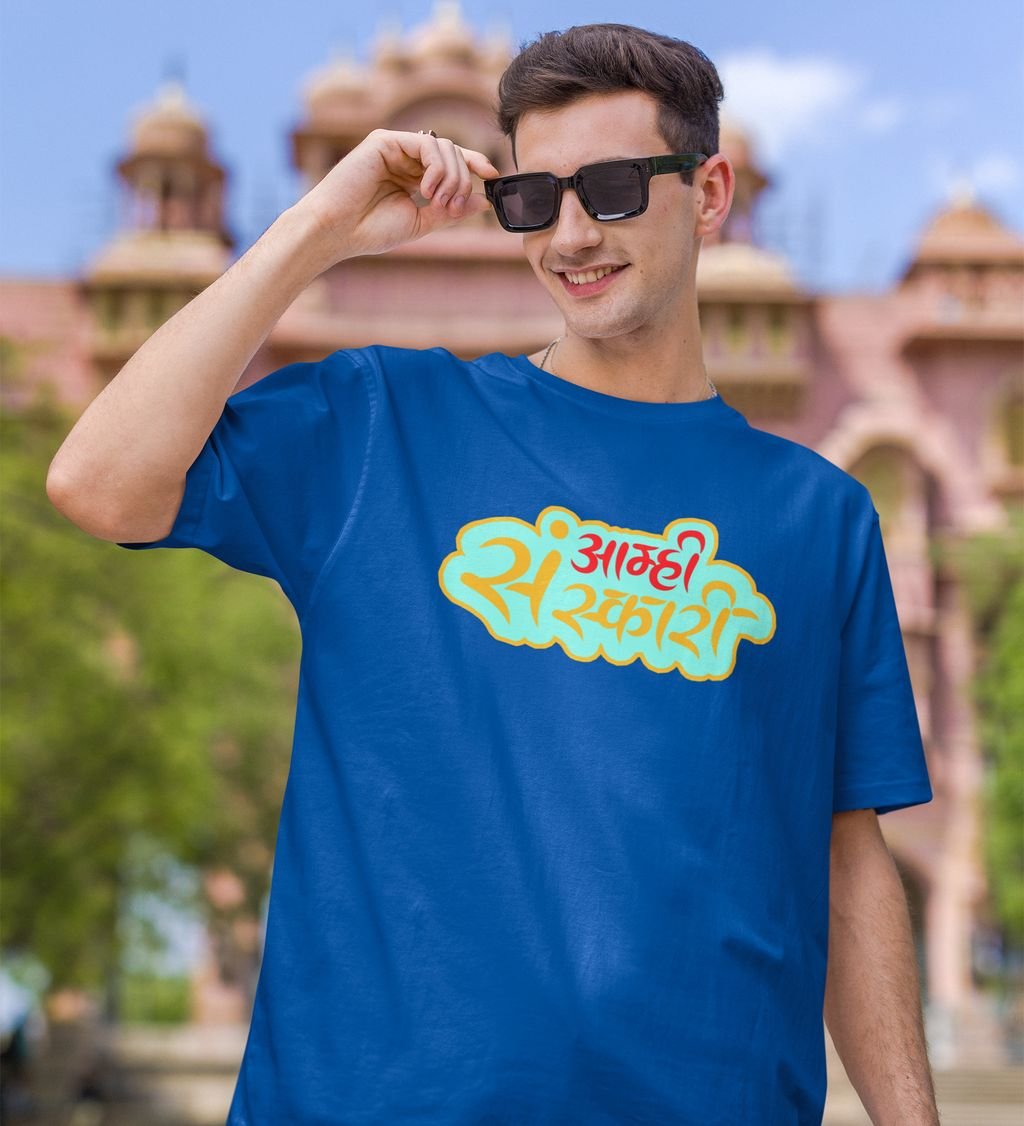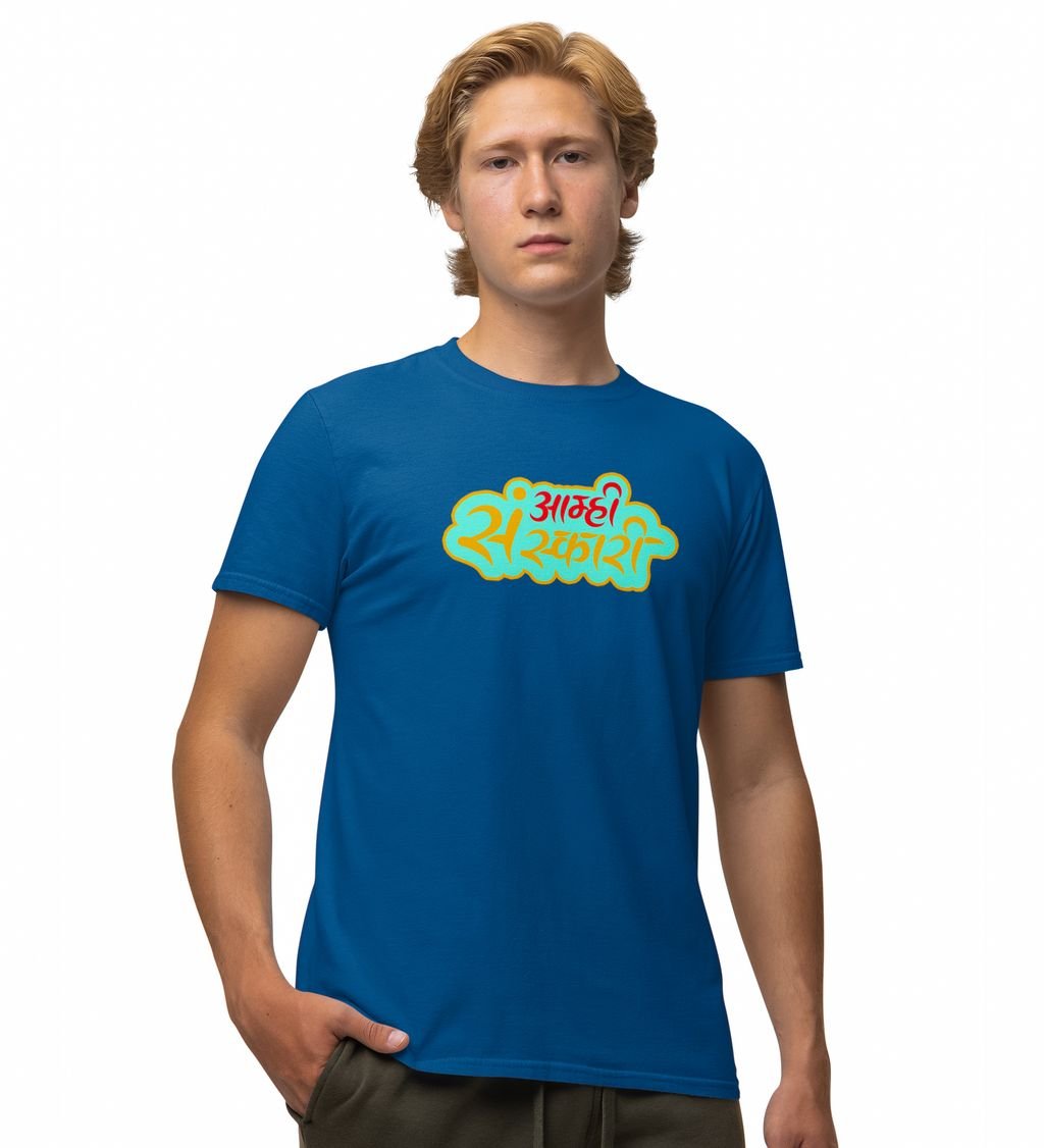 Marathi Masti Blue Round Neck Cotton Half Sleeved Men T Shirt with Printed Graphics