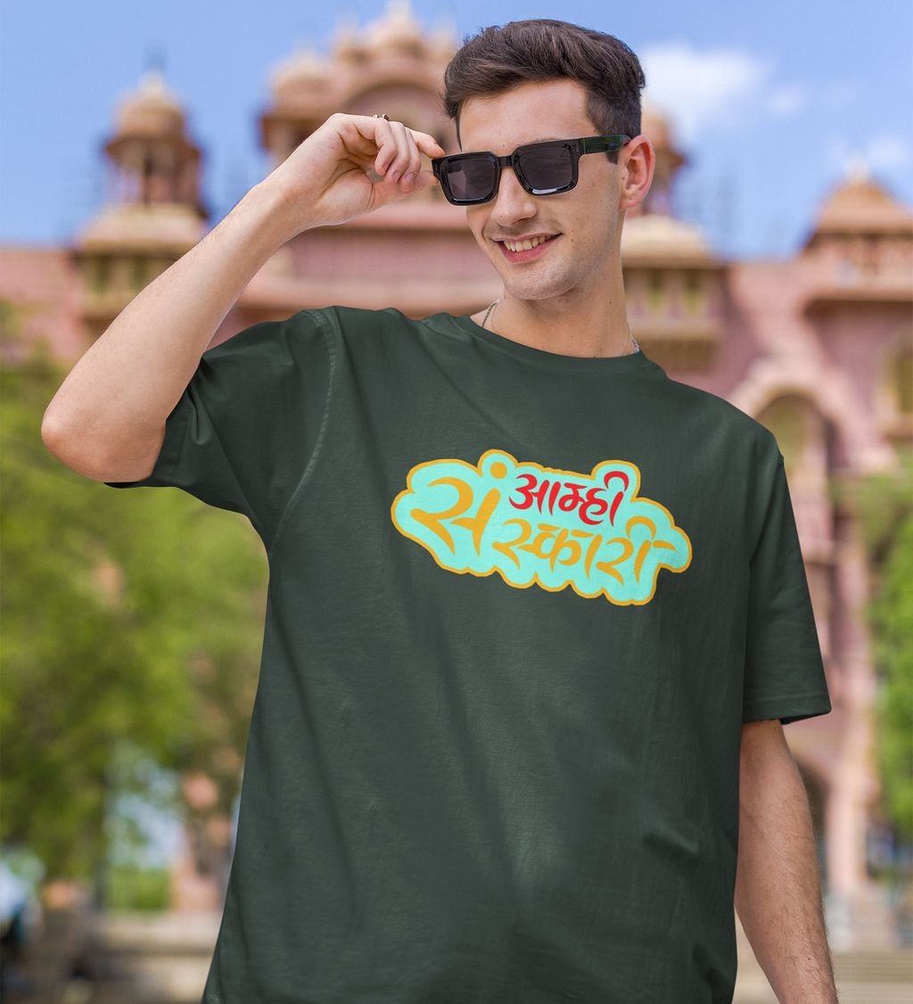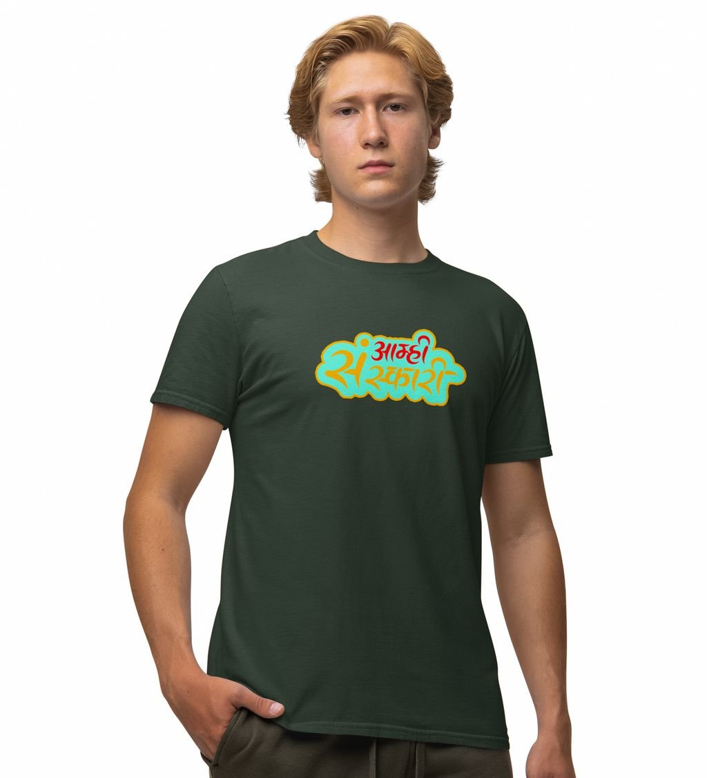 Marathi Masti Green Round Neck Cotton Half Sleeved Men T Shirt with Printed Graphics