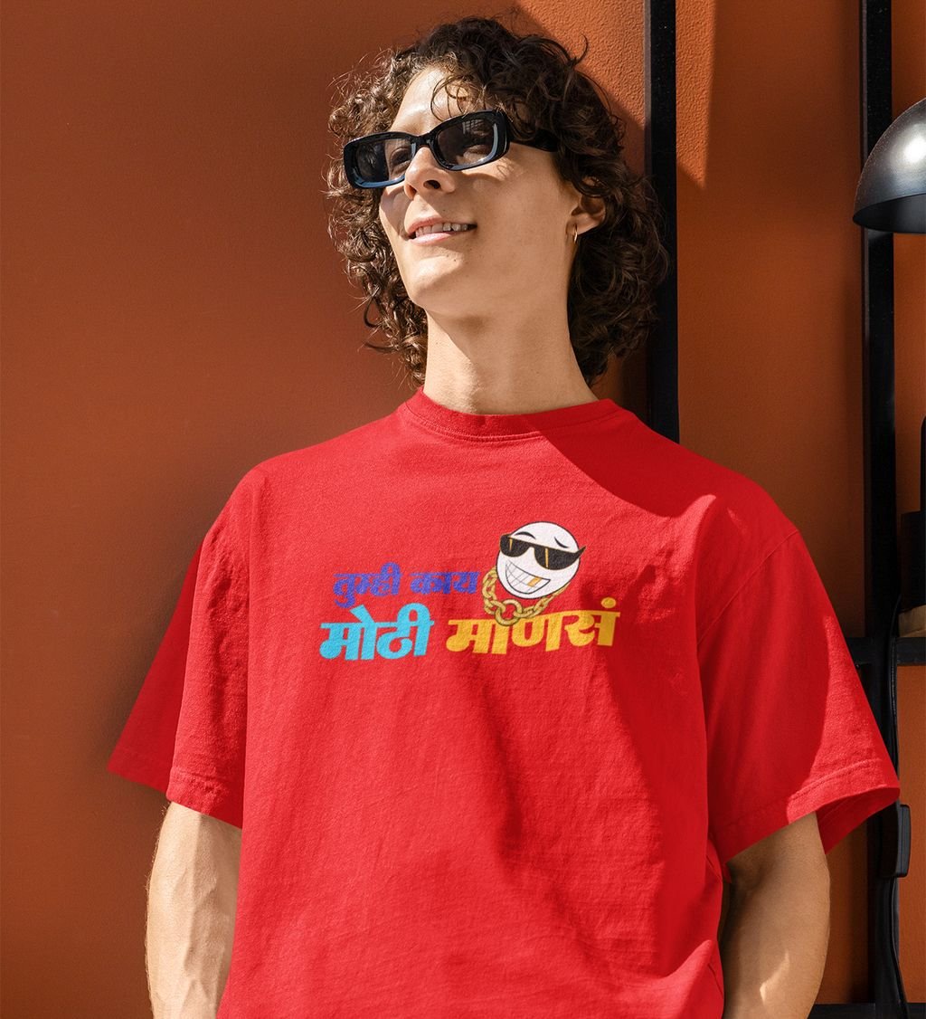 Marathi Pride Red Round Neck Cotton Half Sleeved Mens T Shirt with Printed Graphics