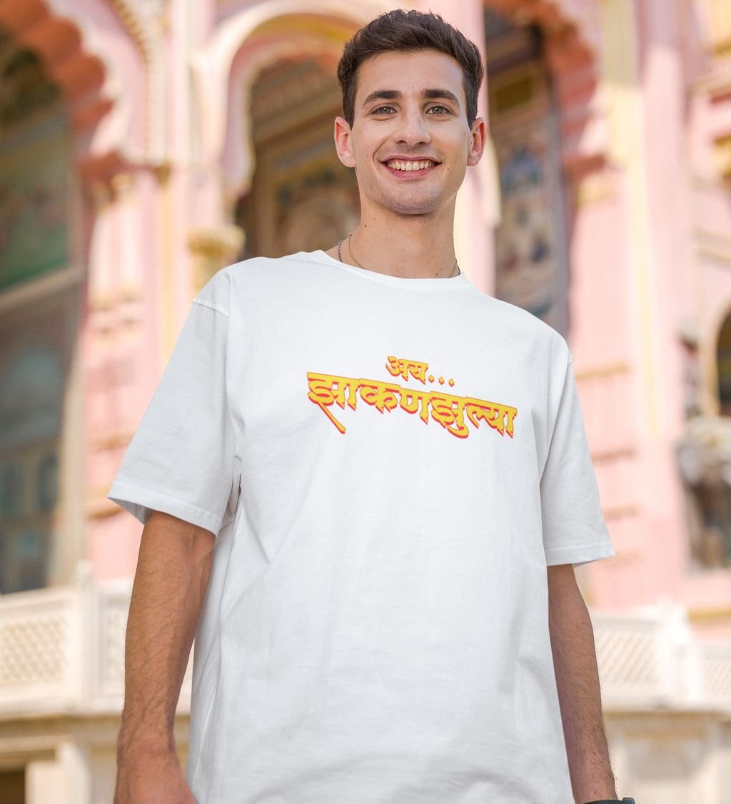 Bring humor and playfulness to your wardrobe with our Marathi Slangs T Shirts, inspired by the famous Marathi phrases Ideal for those with a fun loving personality this shirt is made from soft durable fabric Its unique design and catchy phrase are sure to make you the center of attention at any casual event
