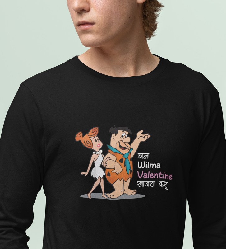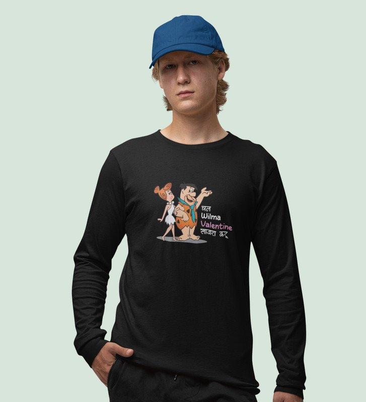 Marathi StoneAge Man: (black) Full Sleeve T-Shirt For Singles