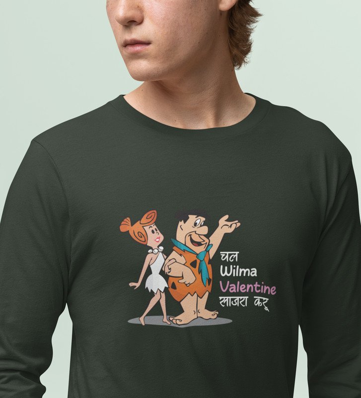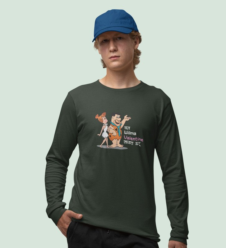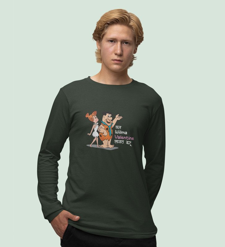 Marathi StoneAge Man: (green) Full Sleeve T-Shirt For Singles
