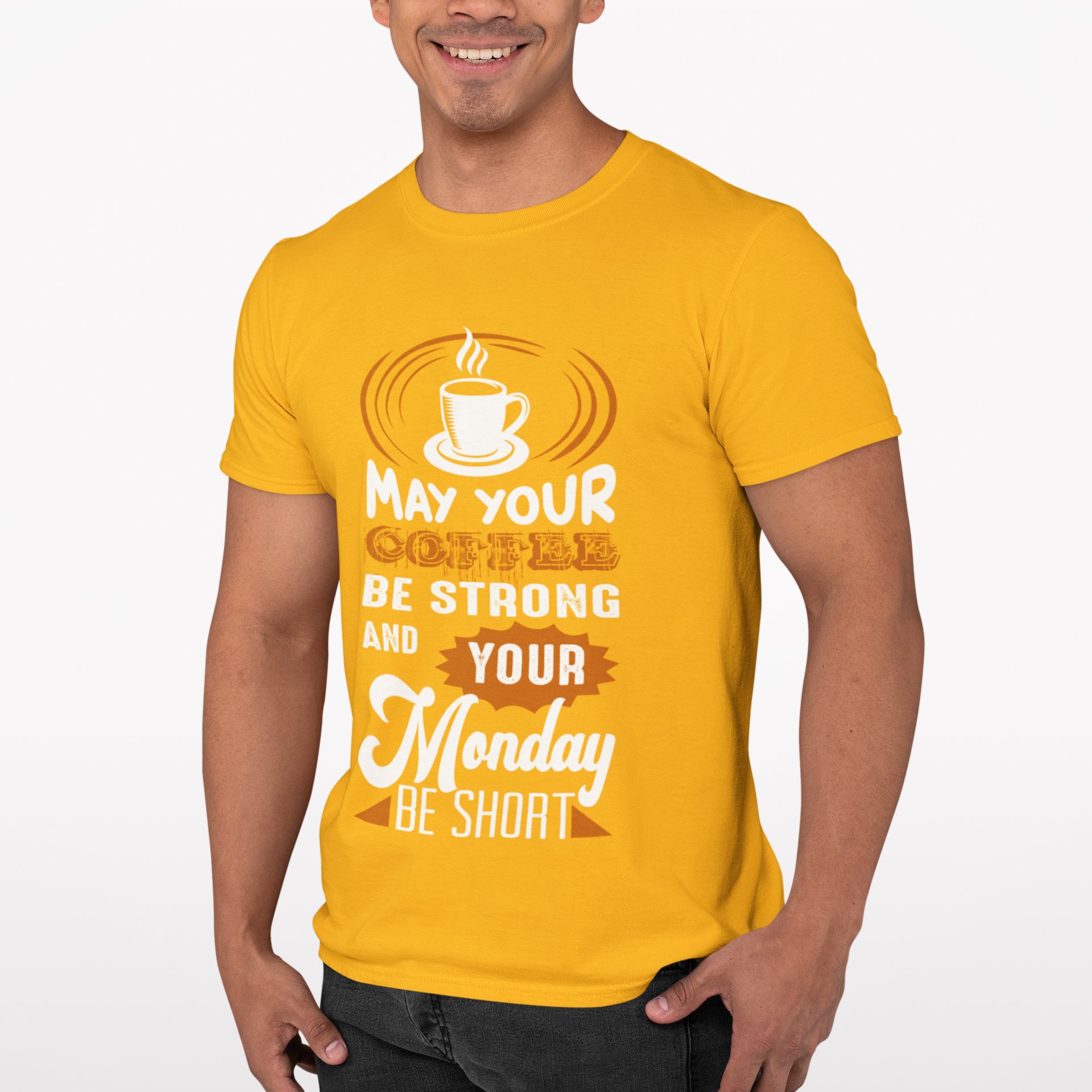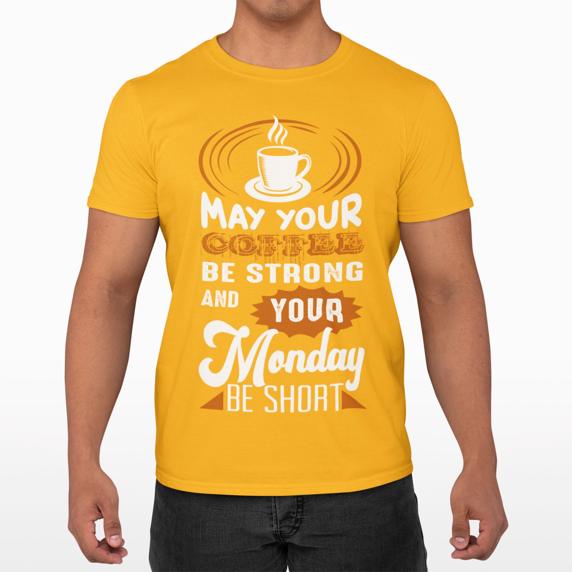 May your Coffee be strong and your monday be short - Yellow - printed t shirt - comfortable round neck cotton.