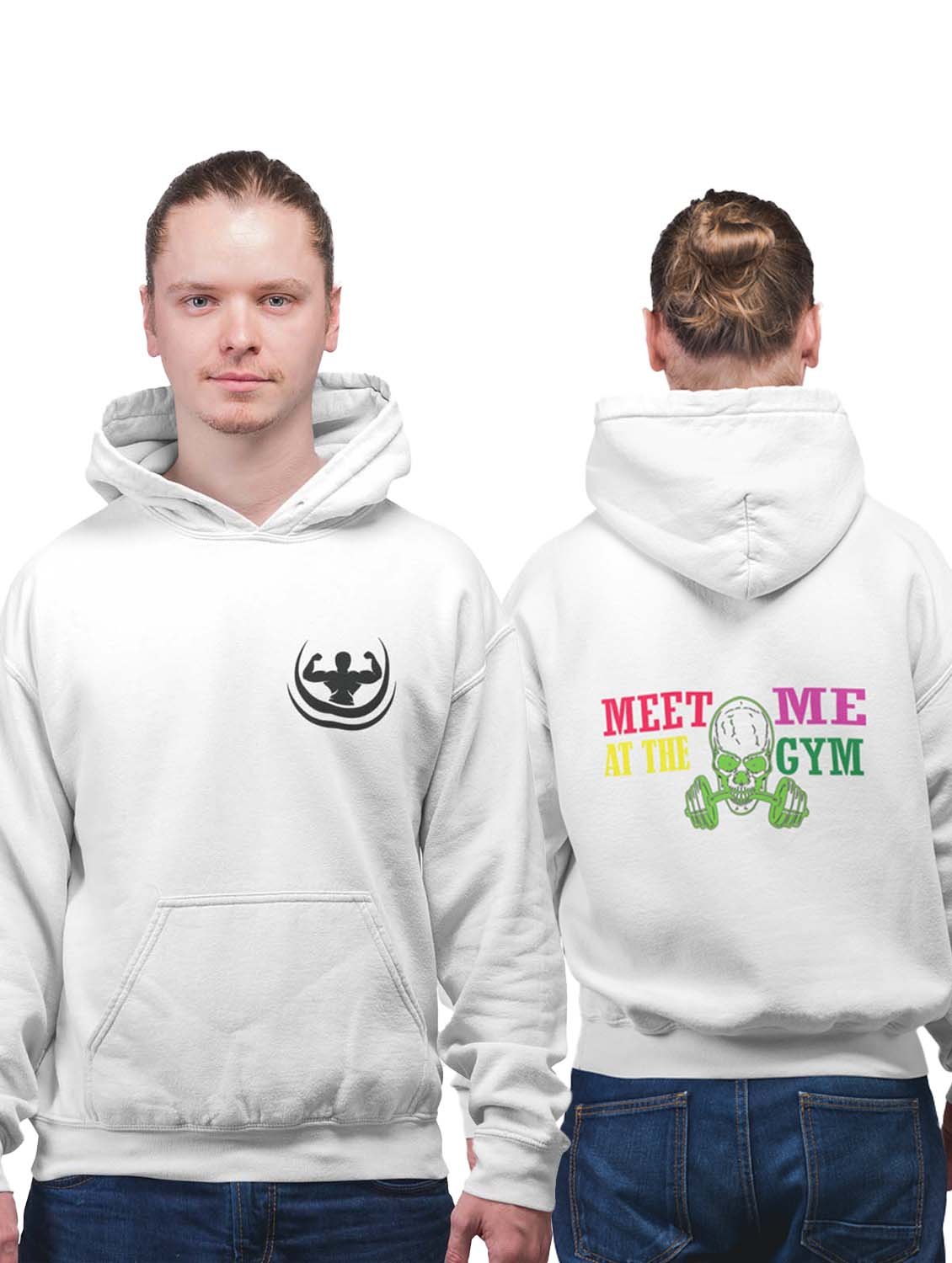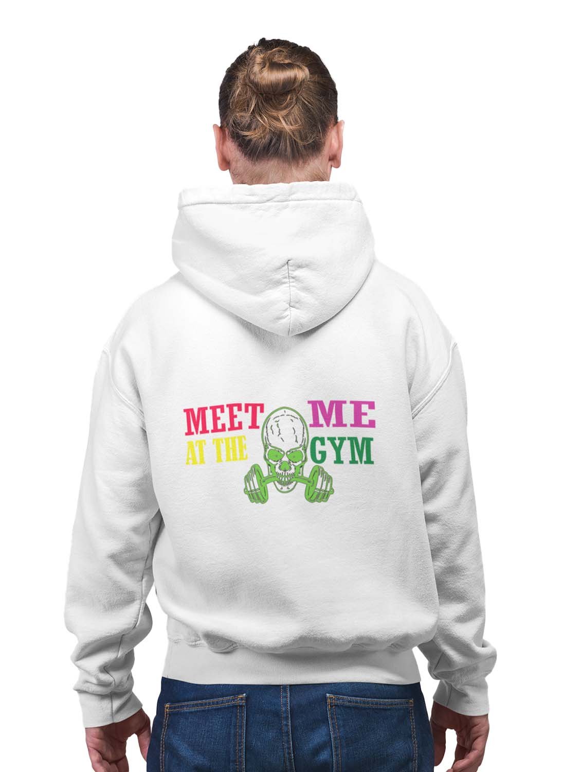 Meet Me At The Gym printed artswear white hoodies for winter casual wear specially for Men