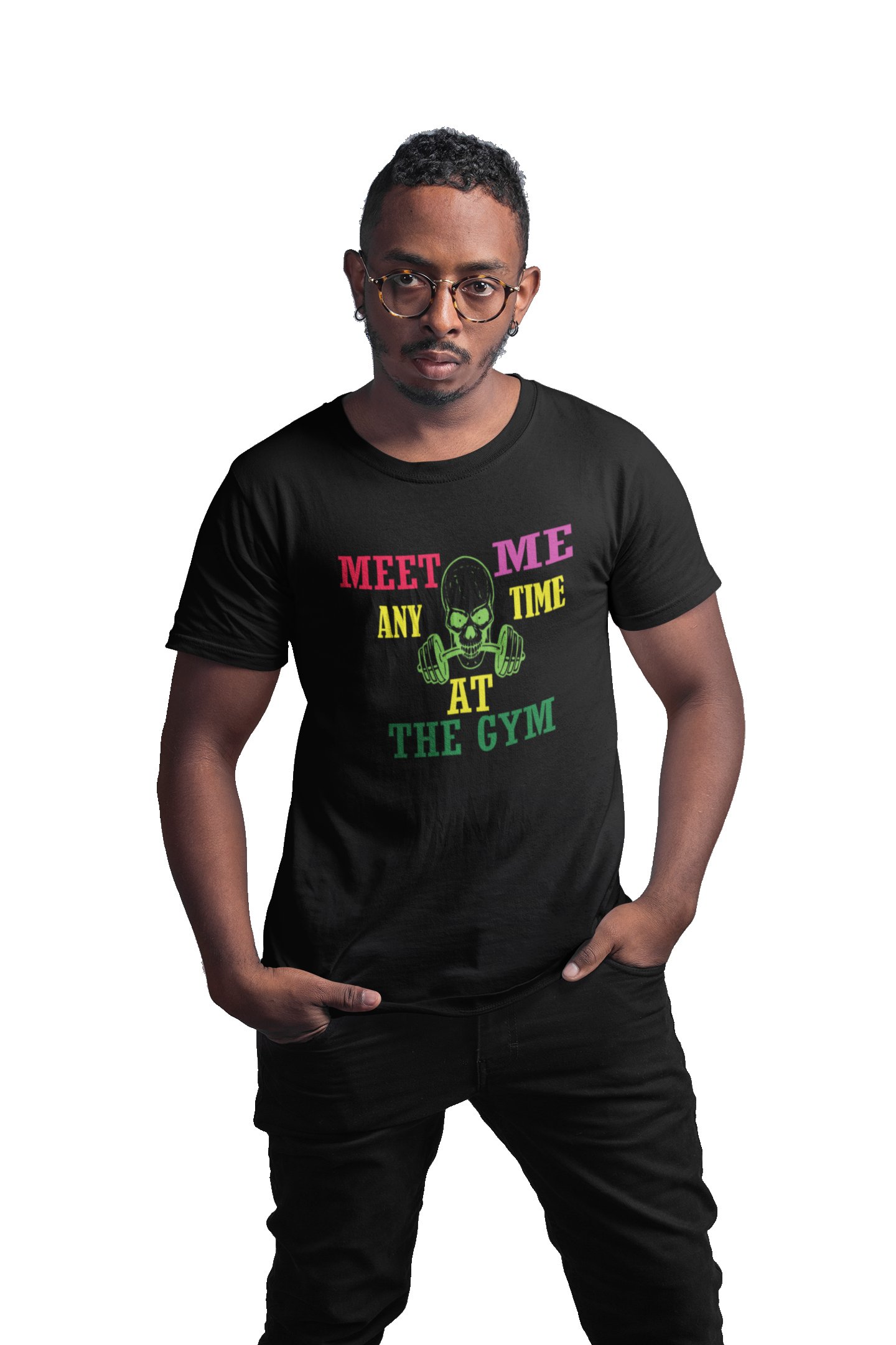 Meet Me Anytime At The Gym, Round Neck Gym Tshirt (Black Tshirt) - Clothes for Gym Lovers - Suitable for Gym Going Person - Foremost Gifting Material for Your Friends and Close Ones