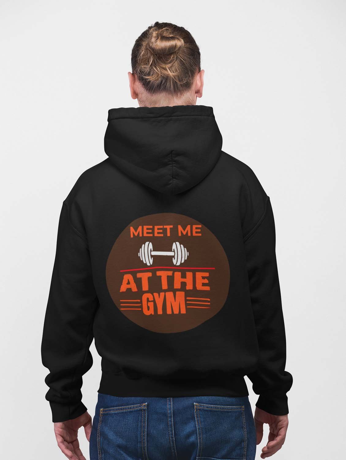 Meet Me At The Gym, 1 Dumble, (BG Orange) printed artswear black hoodies for winter casual wear specially for Men