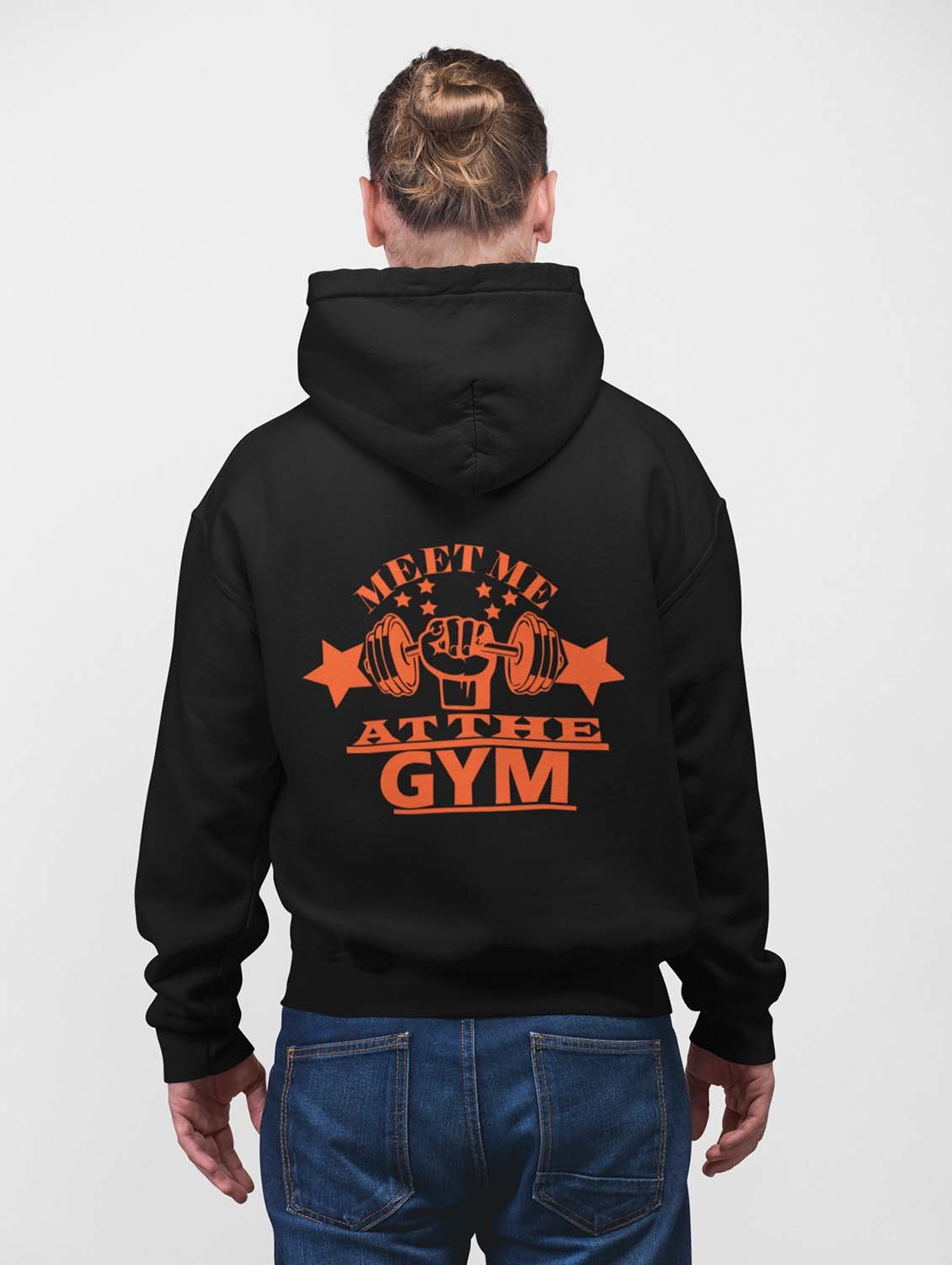 Meet Me At The Gym (BG Orange) printed artswear black hoodies for winter casual wear specially for Men