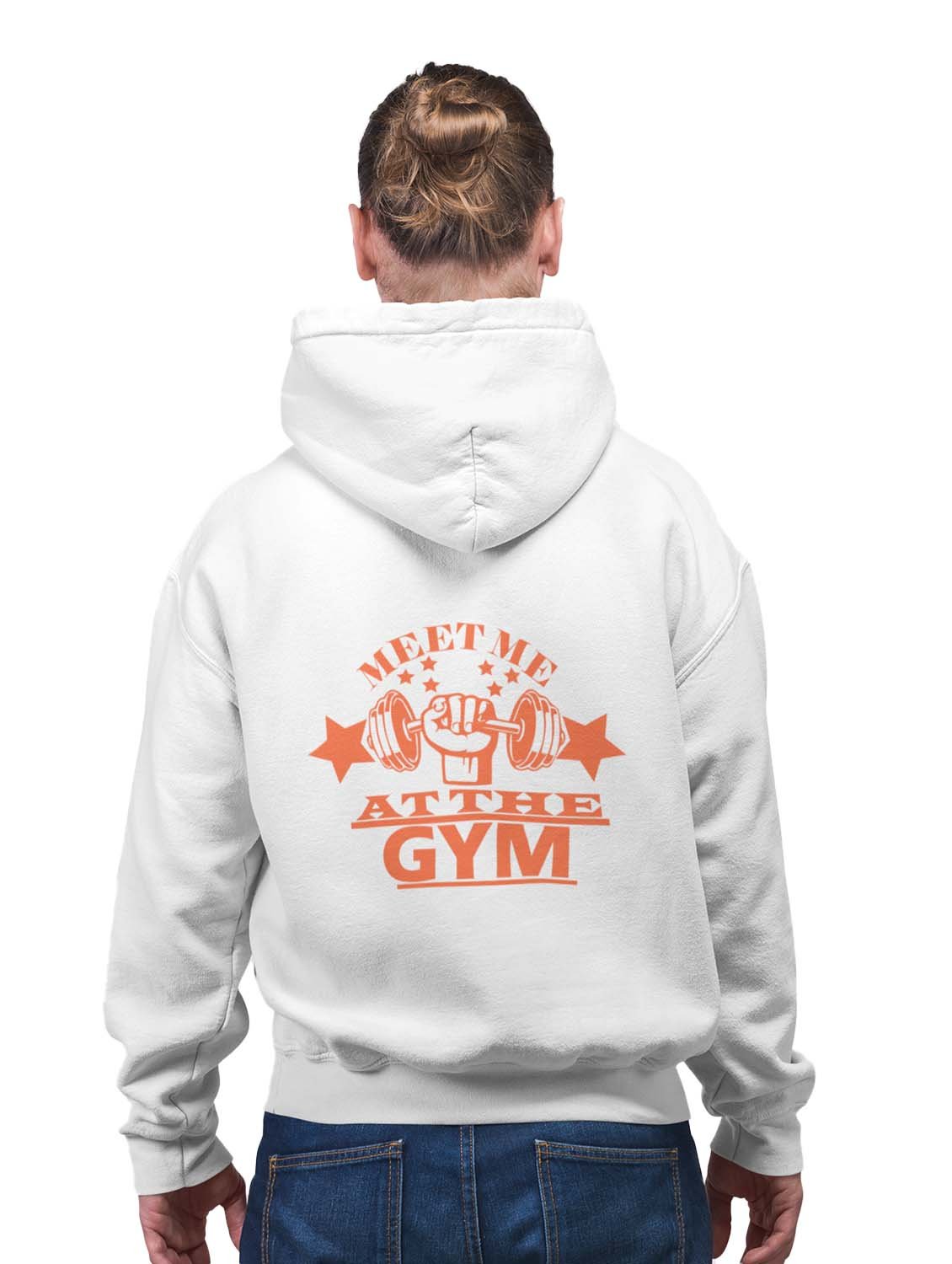 Meet Me At The Gym Orange Text printed artswear white hoodies for winter casual wear specially for Men