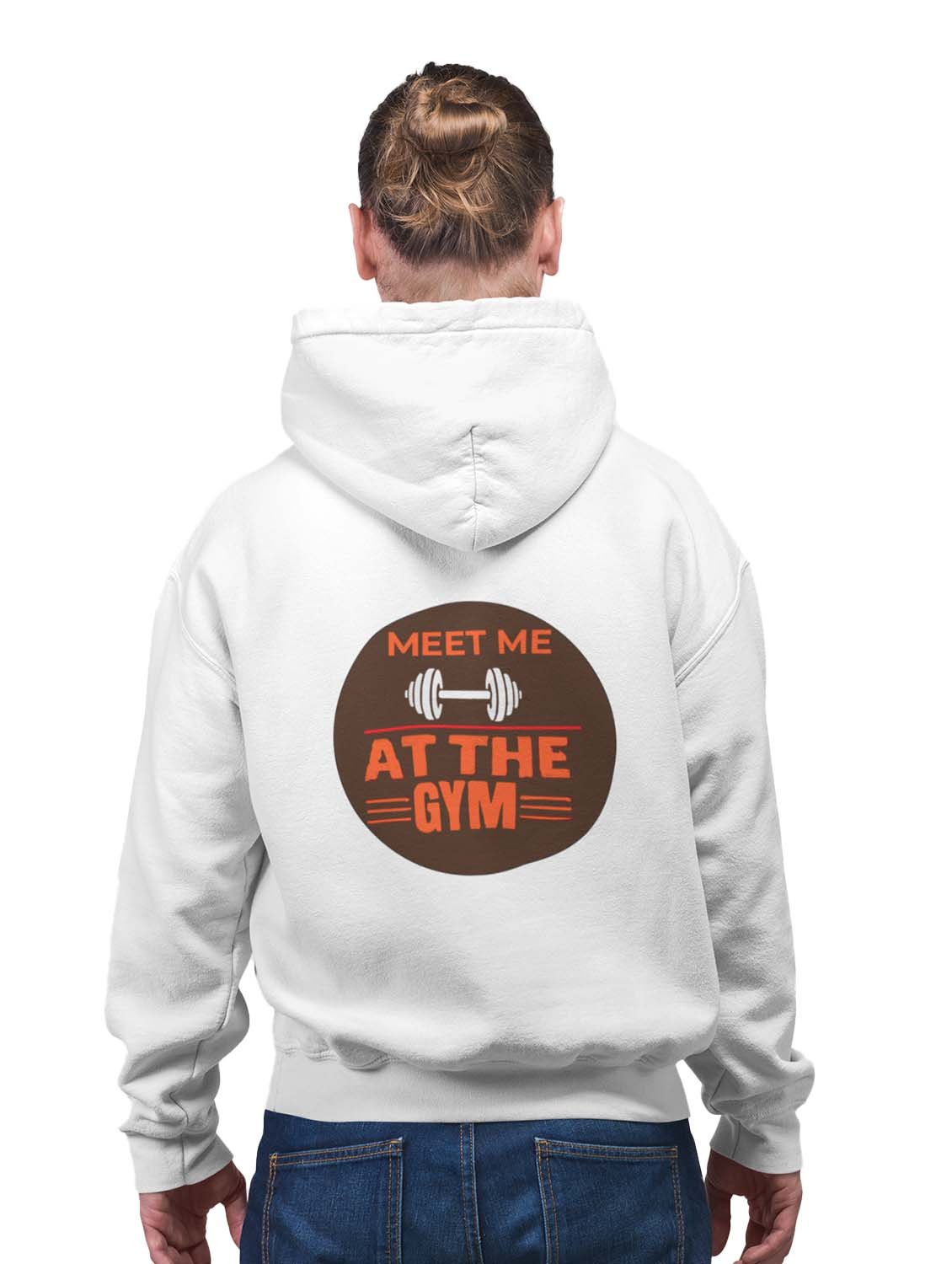 Meet Me At The Gym printed artswear white hoodies for winter casual wear specially for Men