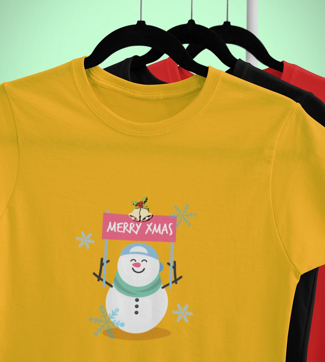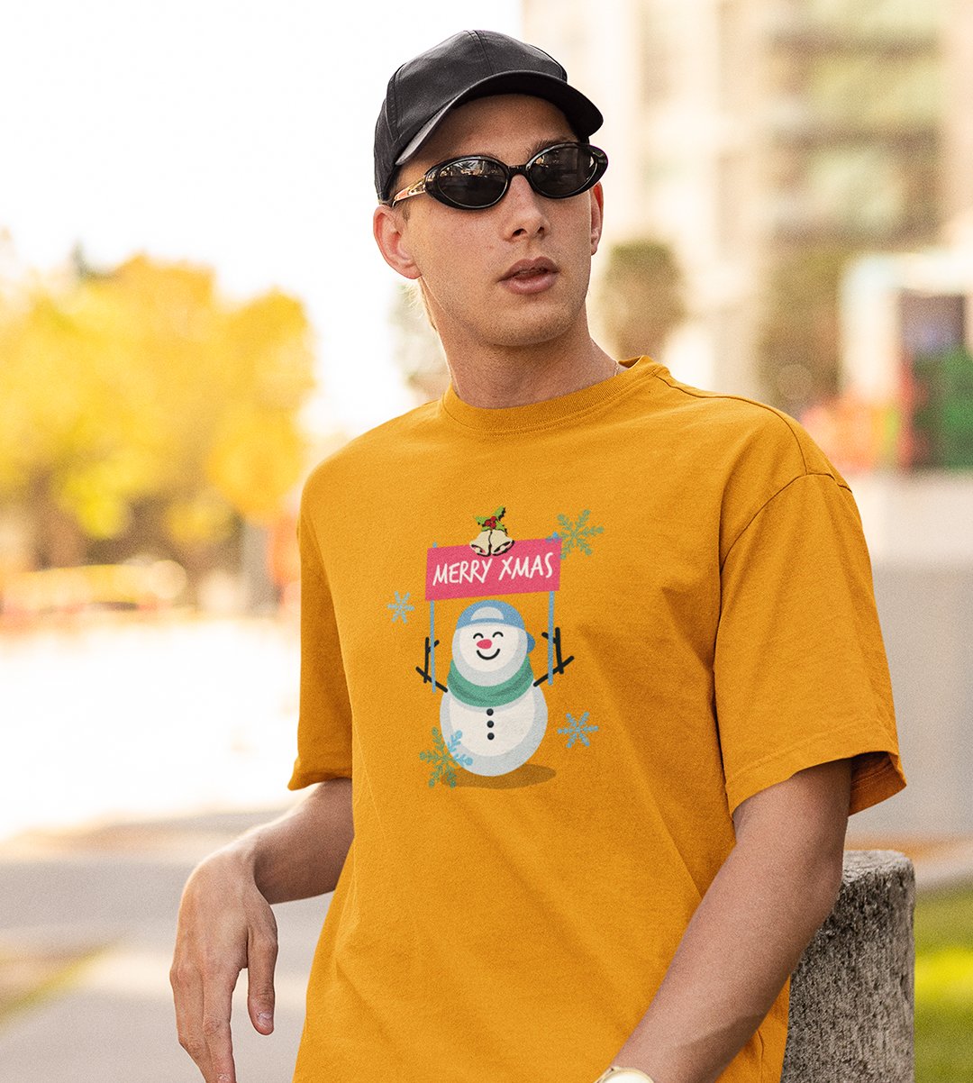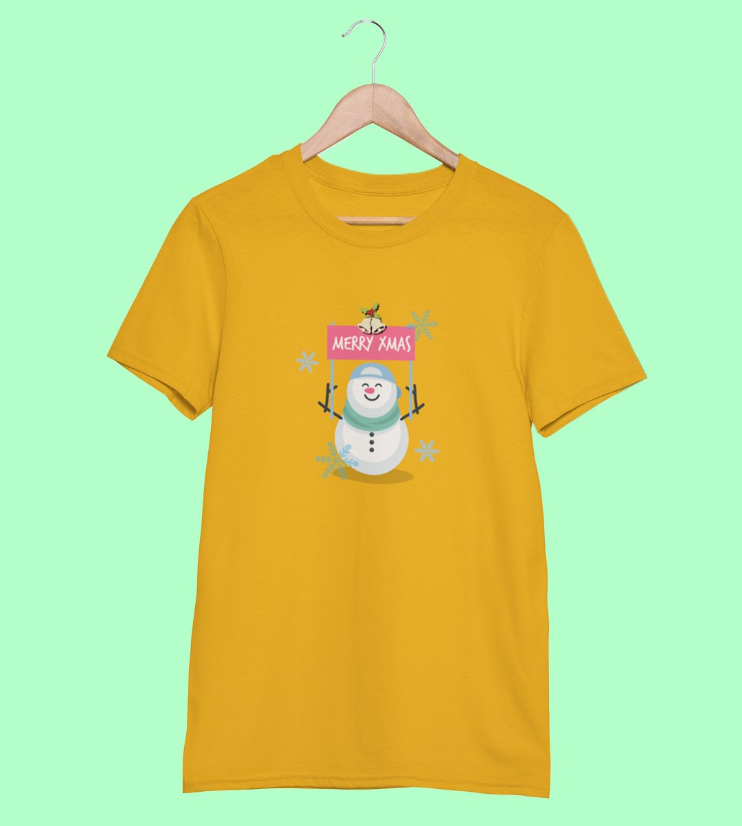 Merry Xmas : Dashing Printed T-shirt (Yellow) Best Gift For Secret Santa