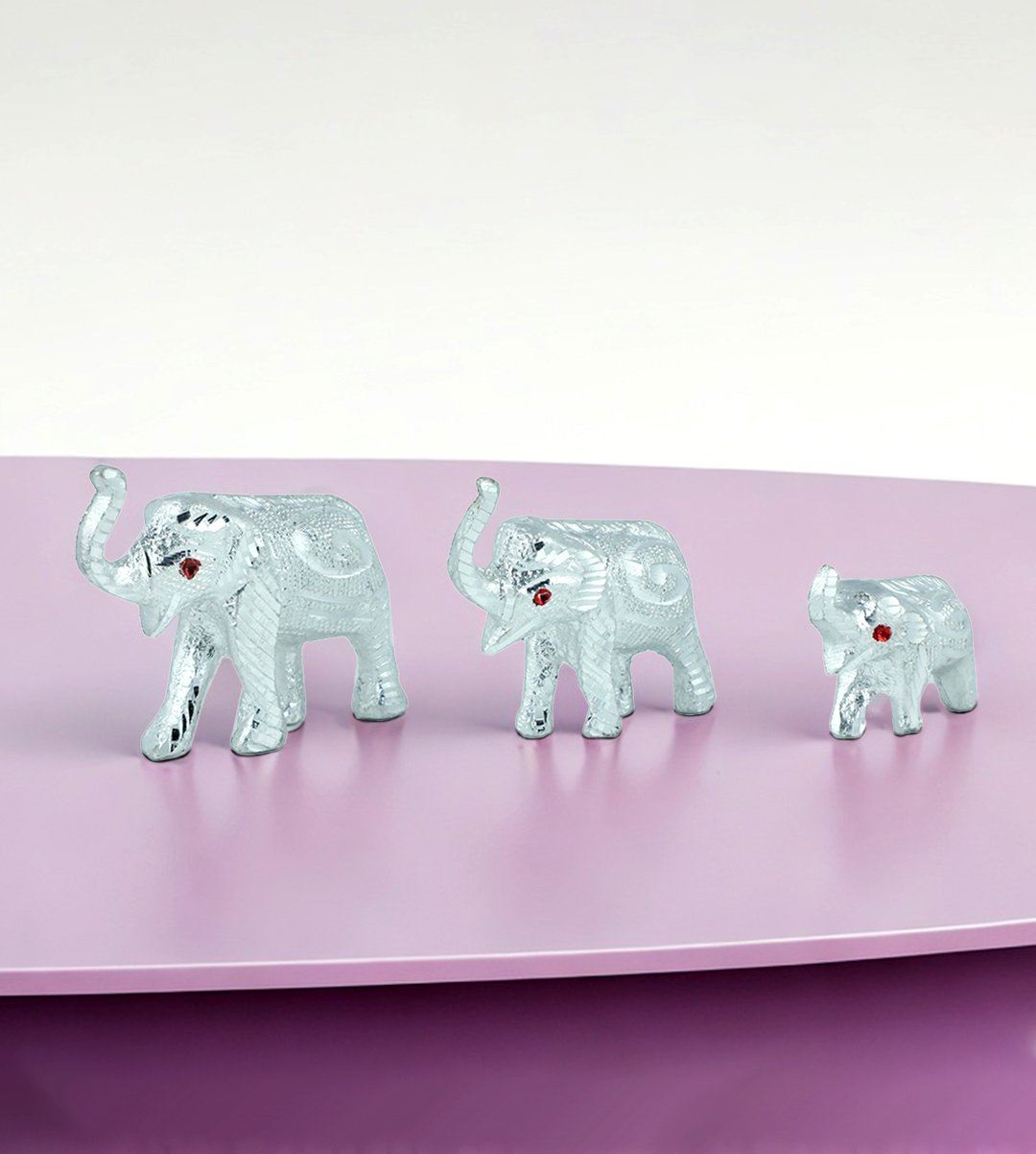 Metal shiny alloy elephant silver showpiece/ effigy for the home decor (small size) (Set of 3)