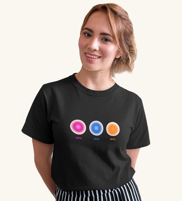 Mind, Body, Soul Black Round Neck Cotton Half Sleeved WomenT-Shirt with Printed Graphics