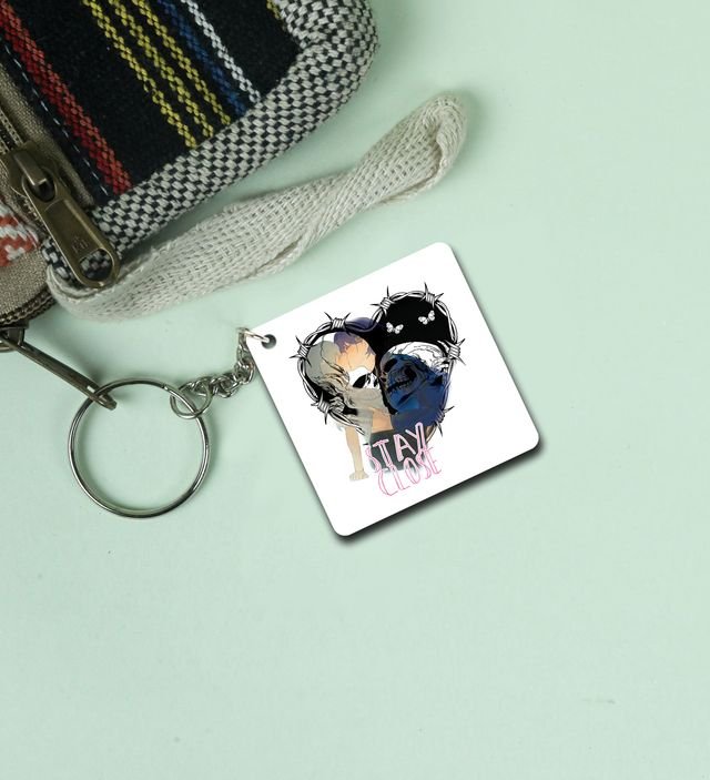 Minimal Stay Close Love Pair Printed Keychain Pack of 2
