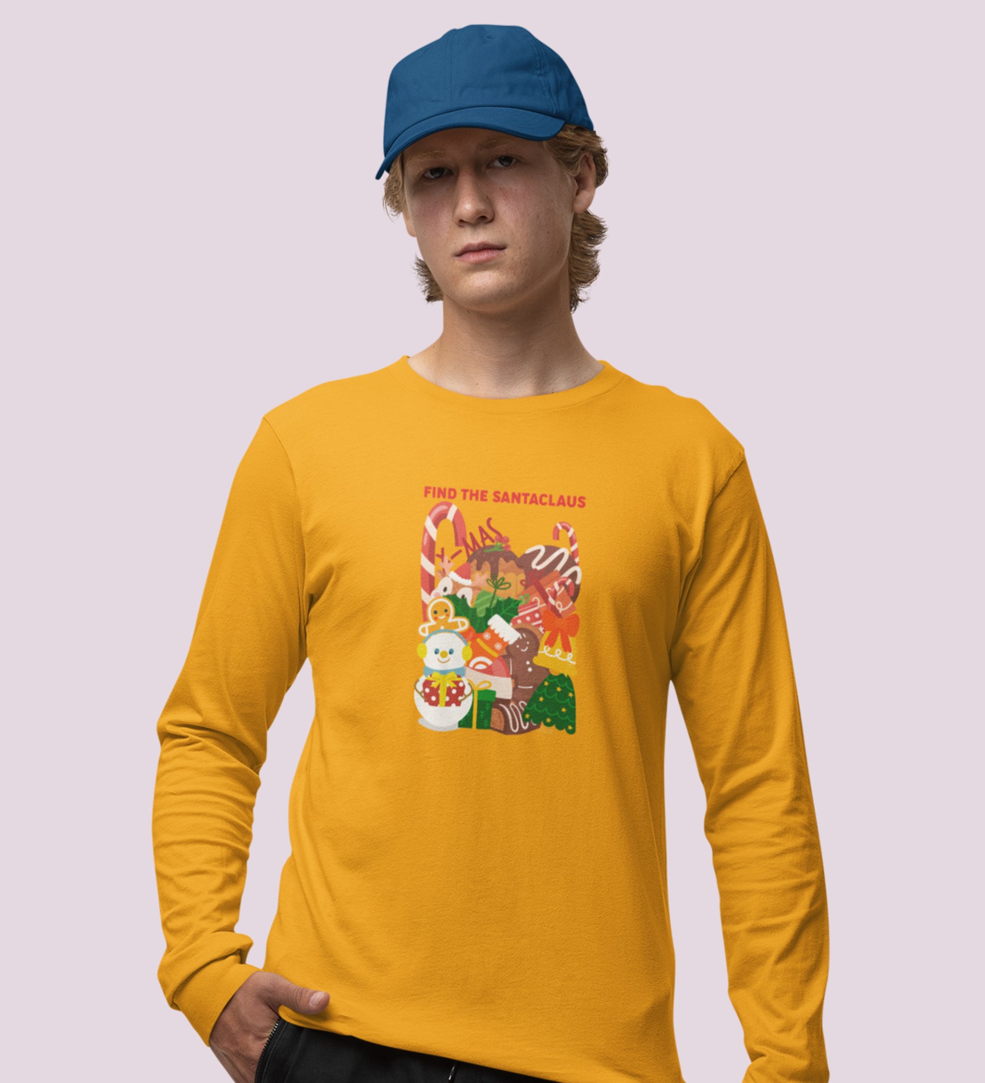 Missing Santa: Mysterious DesignedFull Sleeve T-shirt Yellow Unique Gifts For Secret Santa