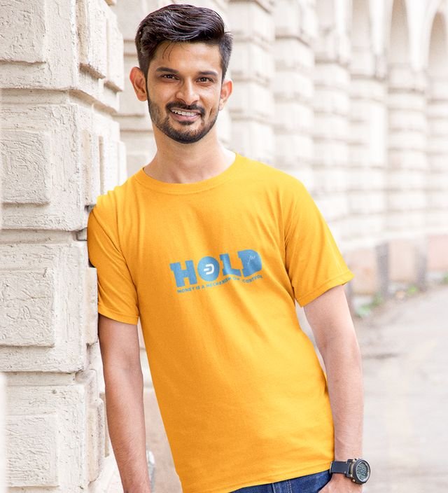 Money Mechanism Wings Yellow Round Neck Cotton Half Sleeved Men's T Shirt with Printed Graphics