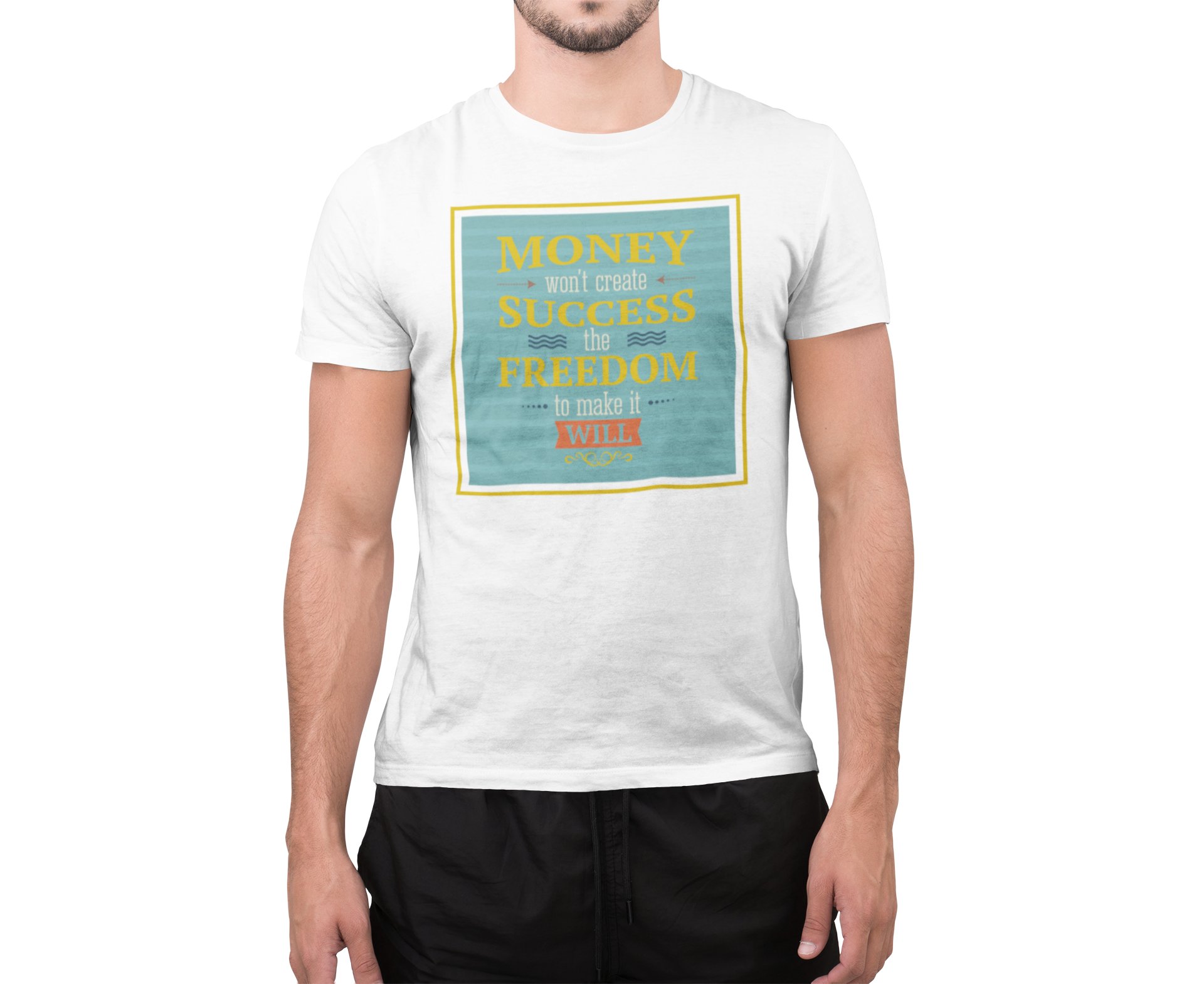 Money success freedom - White - printed T-shirts - Men's stylish clothing - Cool tees for boys