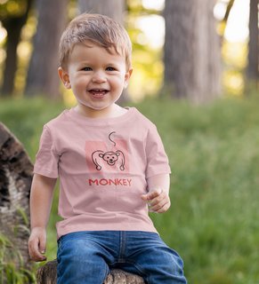 Monkey Love, Boys Cotton Text Print Tshirt (baby pink)