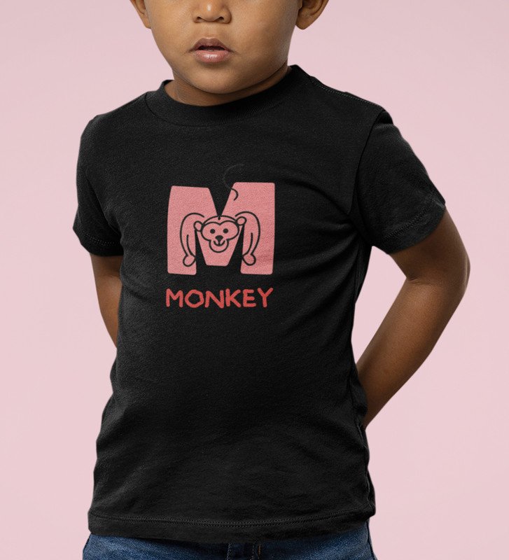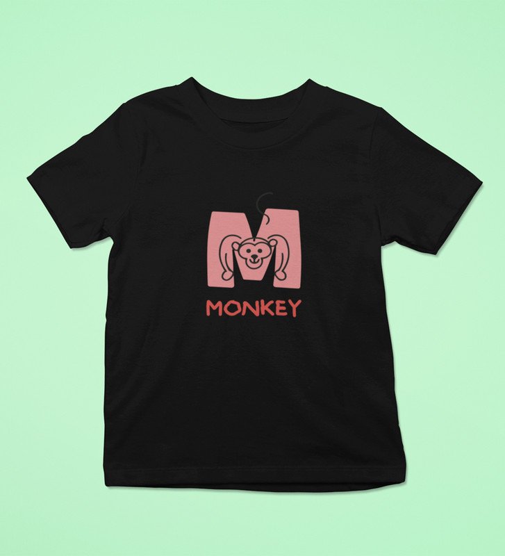 Monkey Love, Boys Cotton Text Print Tshirt (Black)