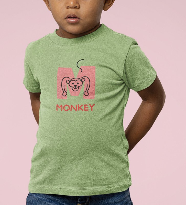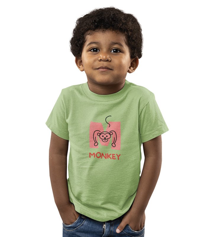 Monkey Love, Boys Cotton Text Print Tshirt (Olive)