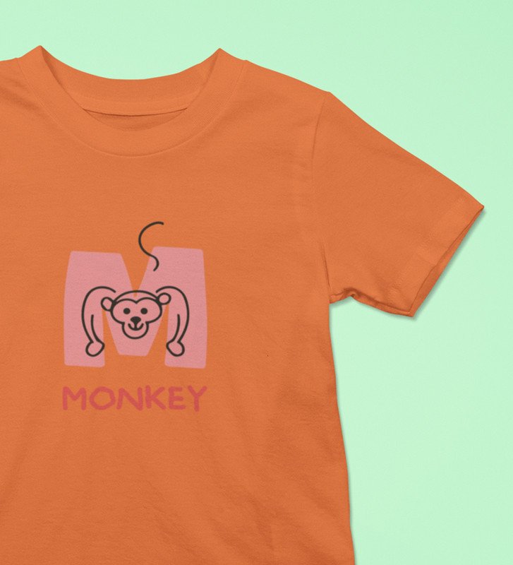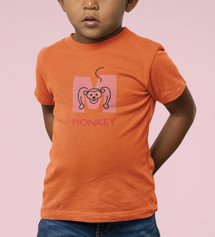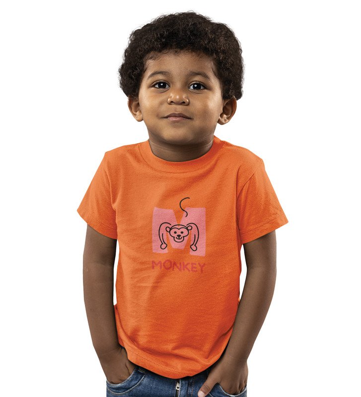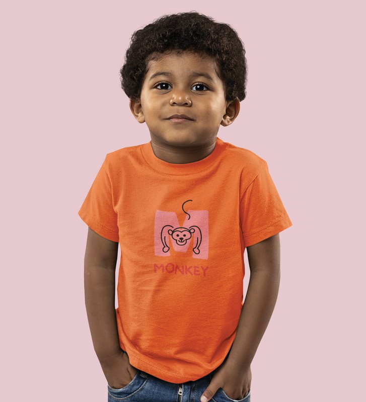 Monkey Love, Boys Cotton Text Print Tshirt (Orange)