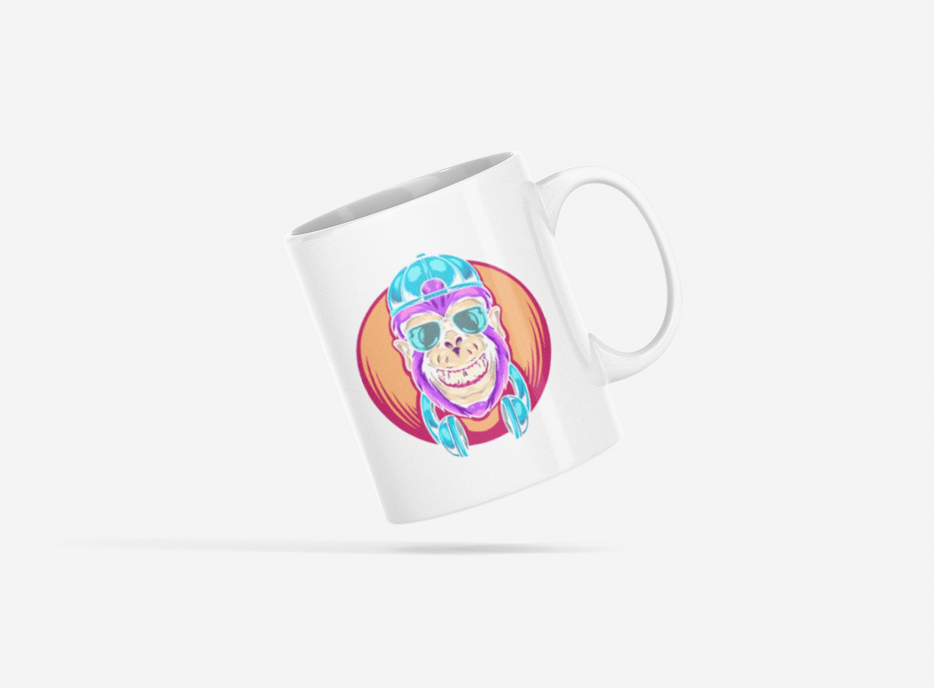 Monkey with cap - animation themed printed ceramic white coffee and tea mugs/ cups for animation lovers
