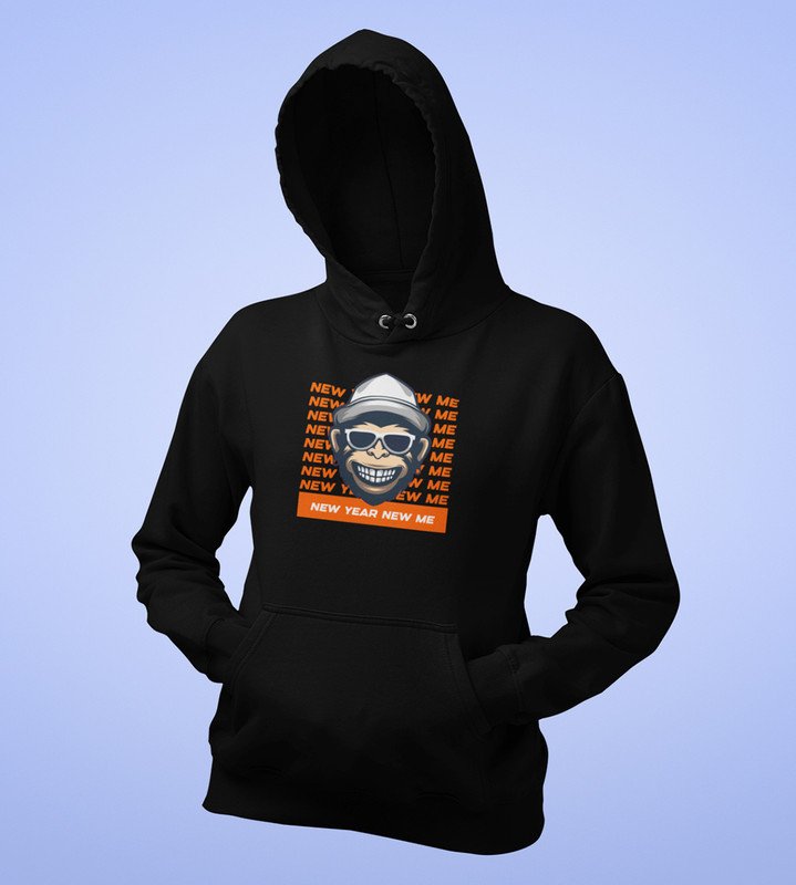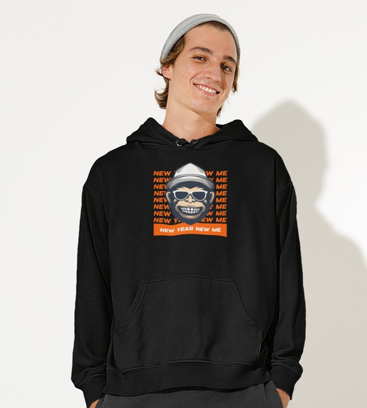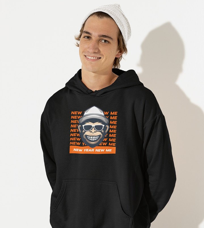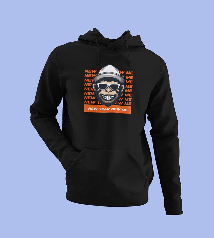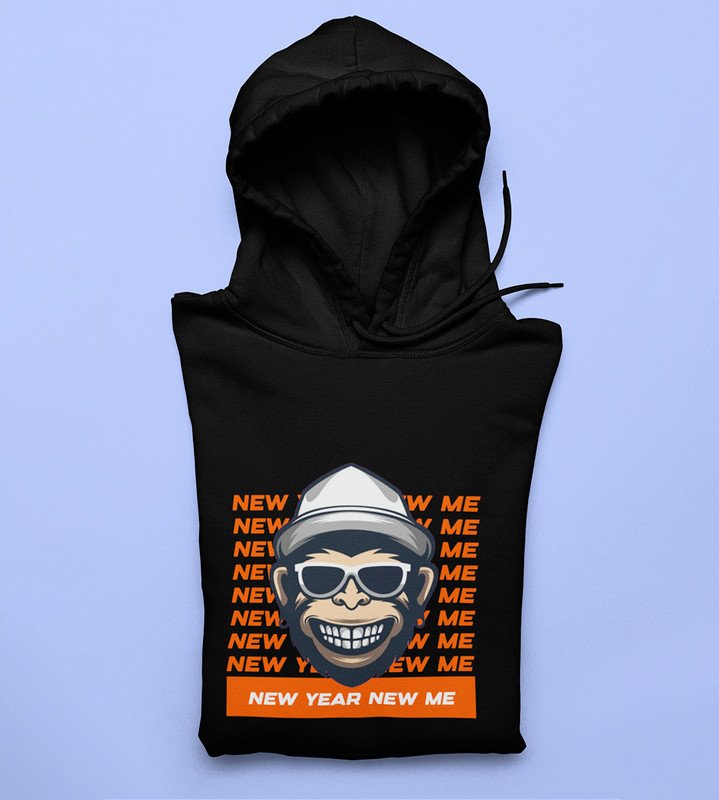 Monkey's New Year, Black New Year Printed Hoodies For Mens