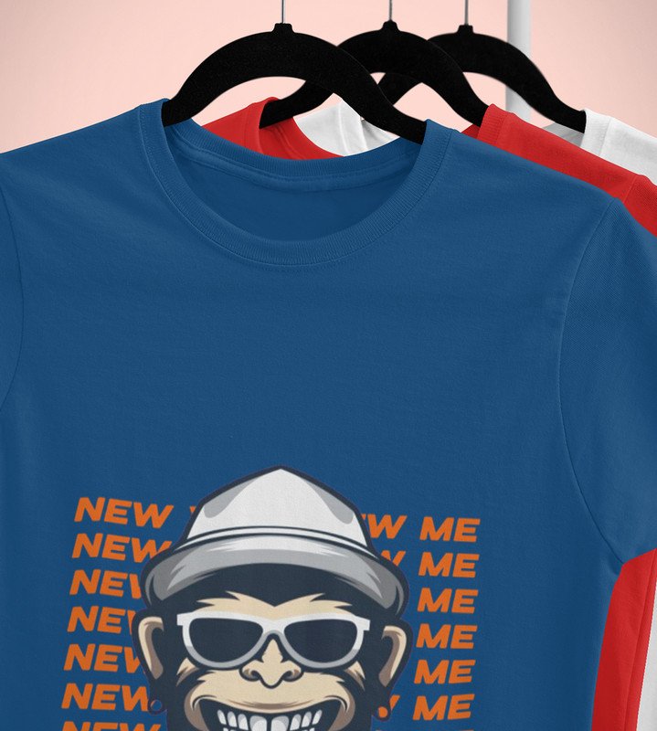 Monkey's New Year Blue New Year Printed T-shirt For Mens
