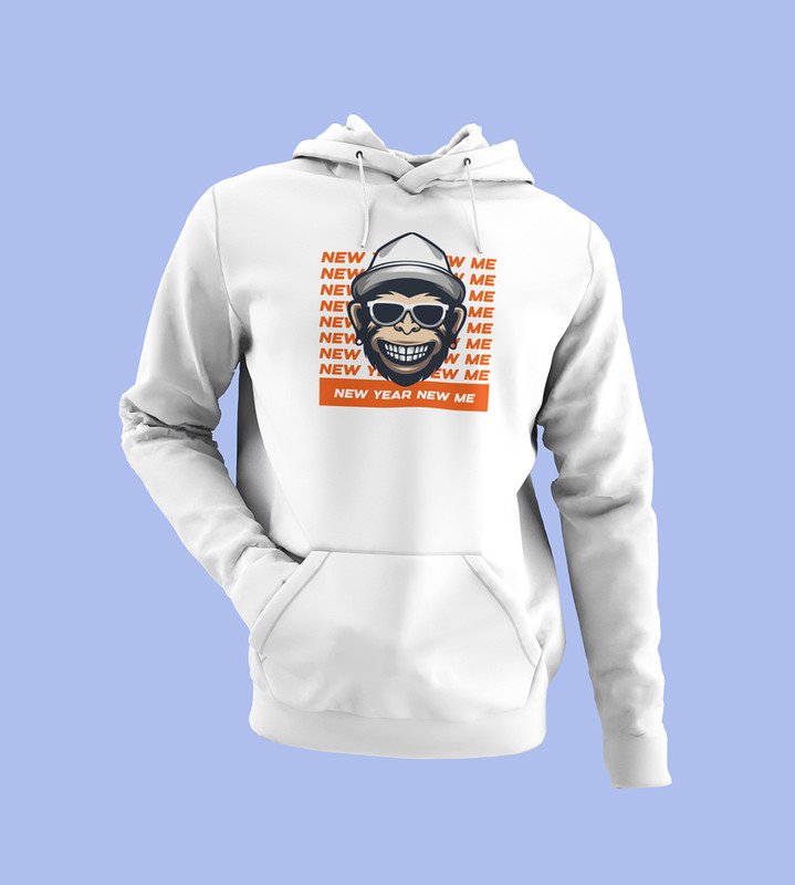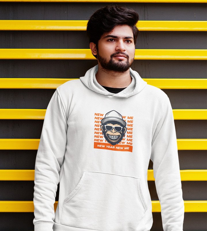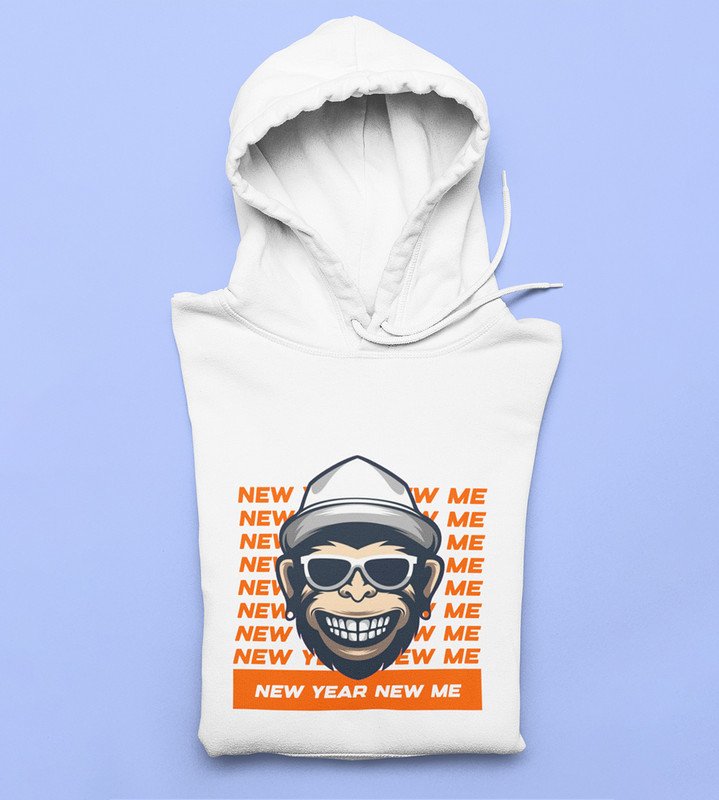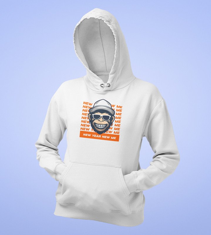 Monkey's New Year, White New Year Printed Hoodies For Mens