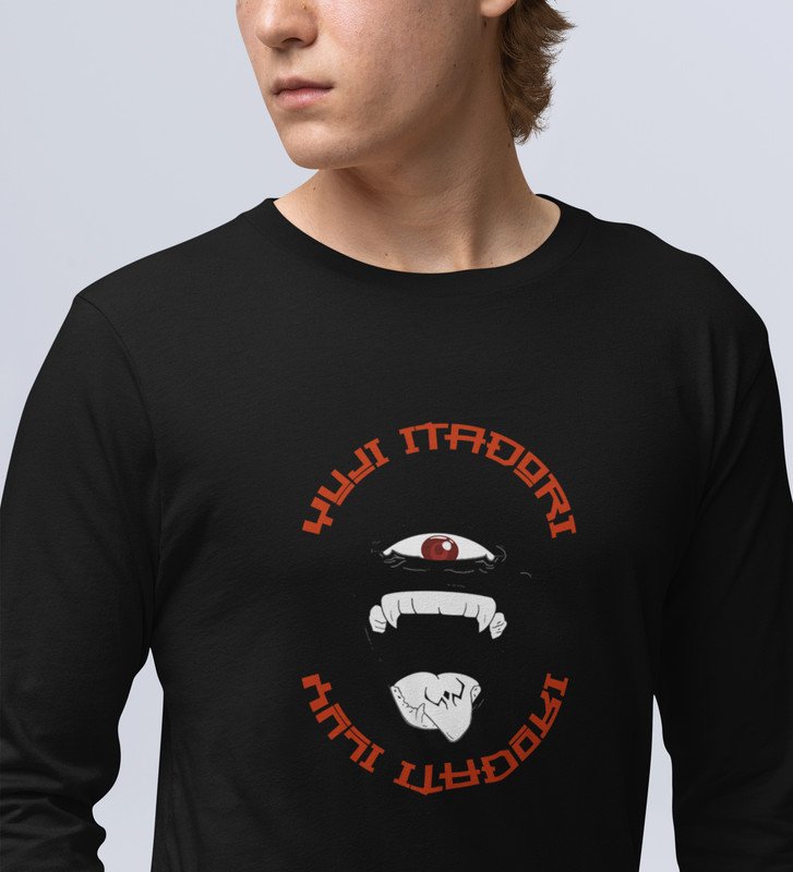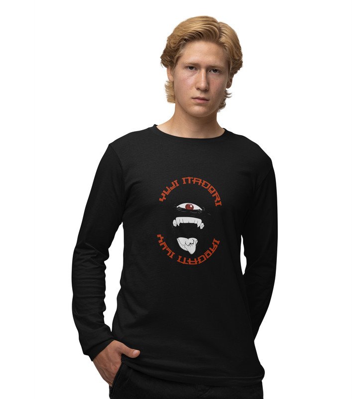 Monster Itadori, Printed Cotton Black Full Sleeves Tshirt For Mens and Boys