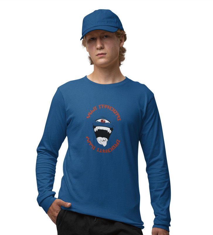 Monster Itadori, Printed Cotton Blue Full Sleeves Tshirt For Mens and Boys