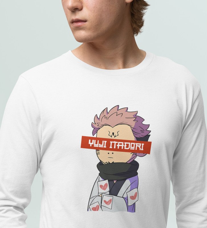 Monster Itadori, Printed Cotton White Full Sleeves Tshirt For Mens and Boys