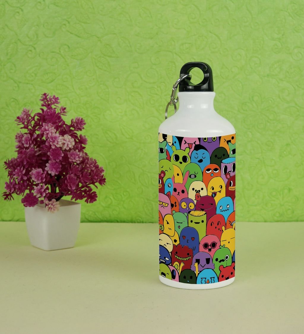 Monster Mirth: Cartoon Designs on Aluminium Water Bottle 600ml