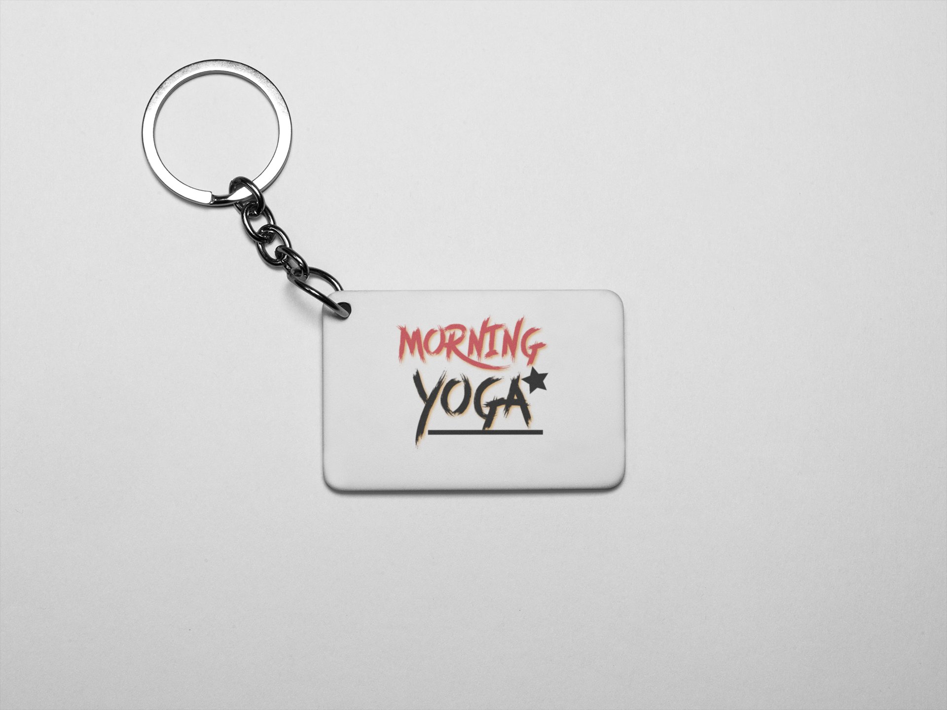 Morning Yoga Text In Red &Black - Printed Acrylic Keychains(Pack Of 2)