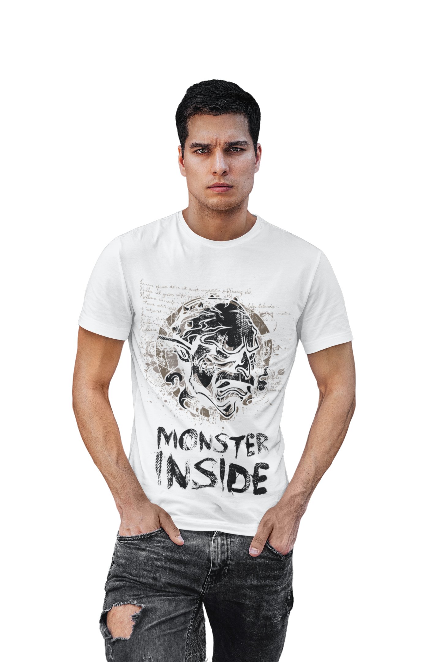 Moster inside printed white T-shirts - Men's stylish clothing - Cool tees for boys