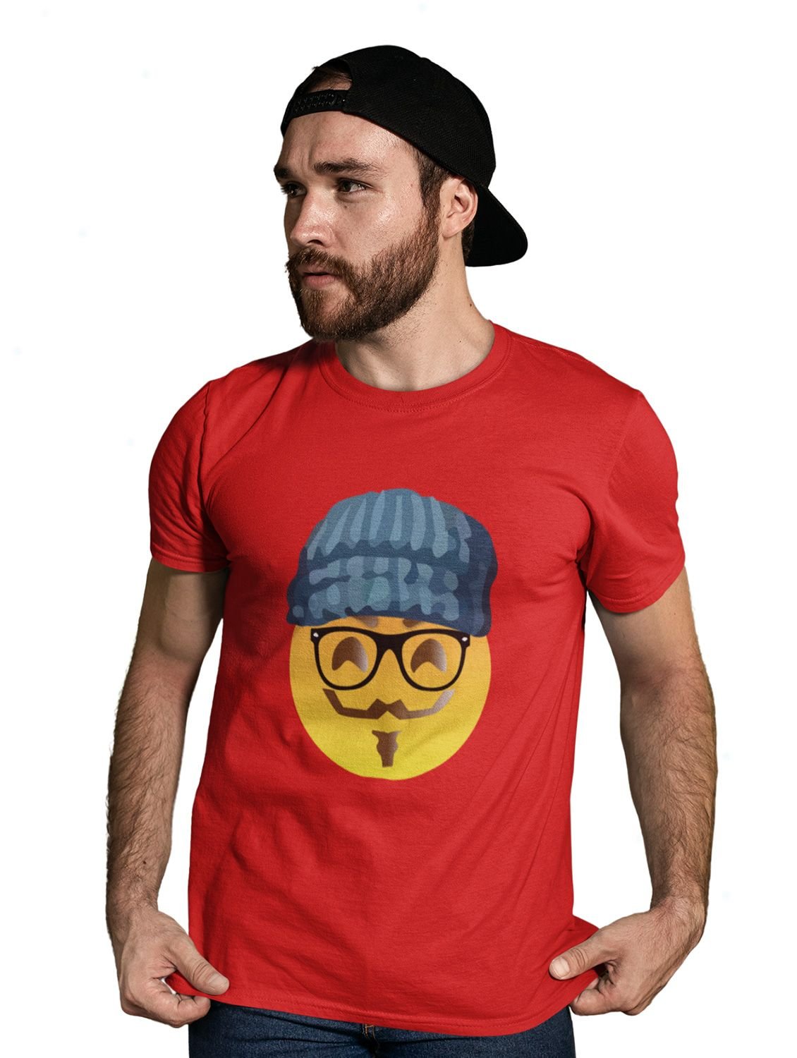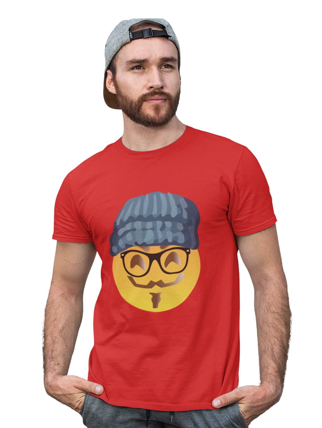 Moustaque Face Emoji T-shirt (Red) - Clothes for Emoji Lovers - Foremost Gifting Material for Your Friends and Close Ones
