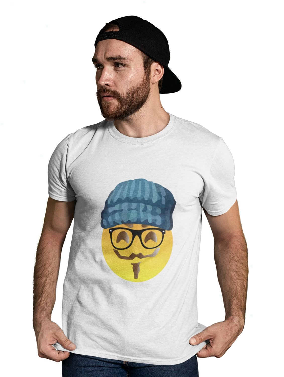 Moustaque Face Emoji T-shirt (White) - Clothes for Emoji Lovers -Foremost Gifting Material for Your Friends and Close Ones