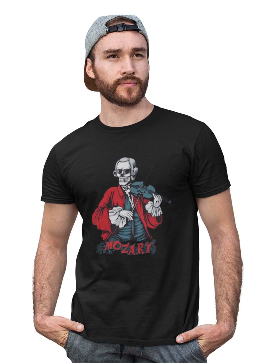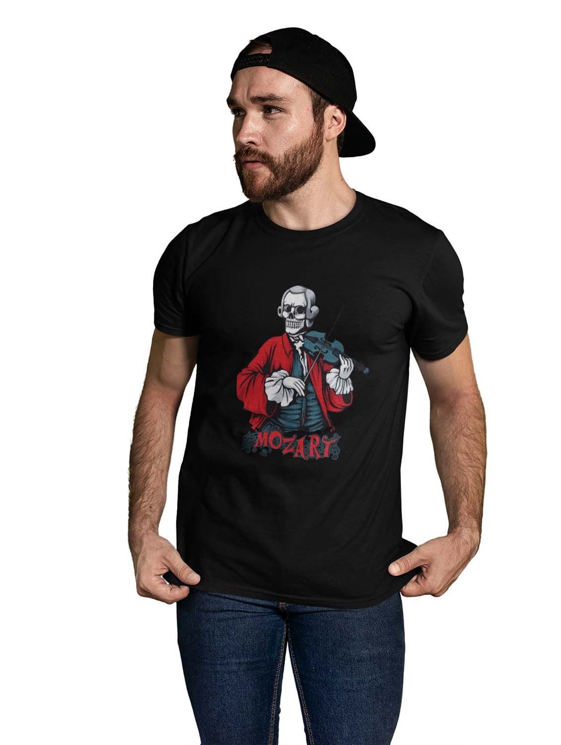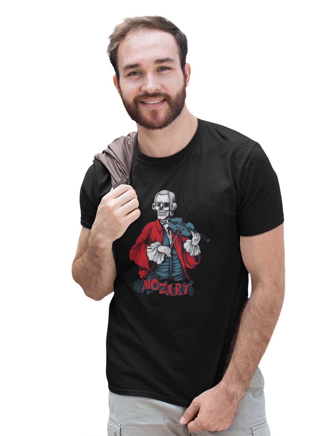 Mozart- The Composer Black Round Neck Cotton Half Sleeved T-Shirt with Printed Graphics