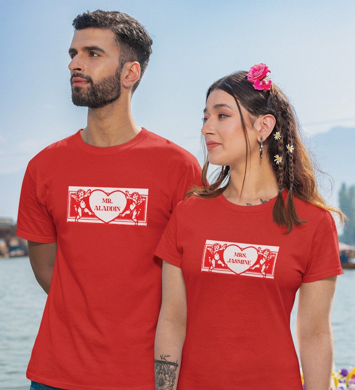 Mr Aladdin/Mrs Jasmine Printed Couple (Red) T-shirts