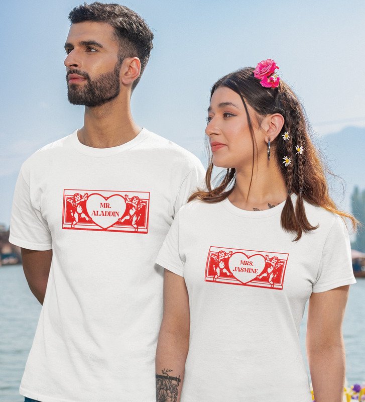 Mr Aladdin/Mrs Jasmine Printed Couple (White) T-shirts