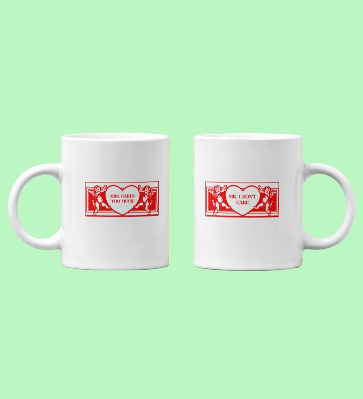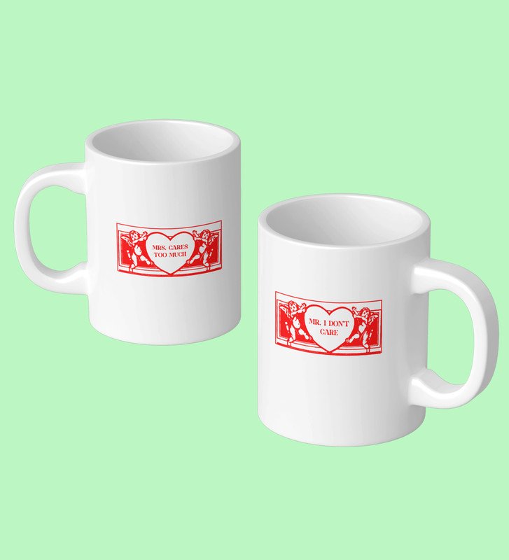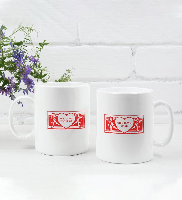 Mr Cares Too Much/ Mrs I Don't Care, Printed Coffee Mugs For Couple