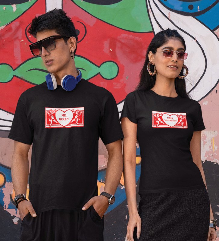 Mr Goofy/Mrs Well-Dressed Printed Couple (Black) T-shirts