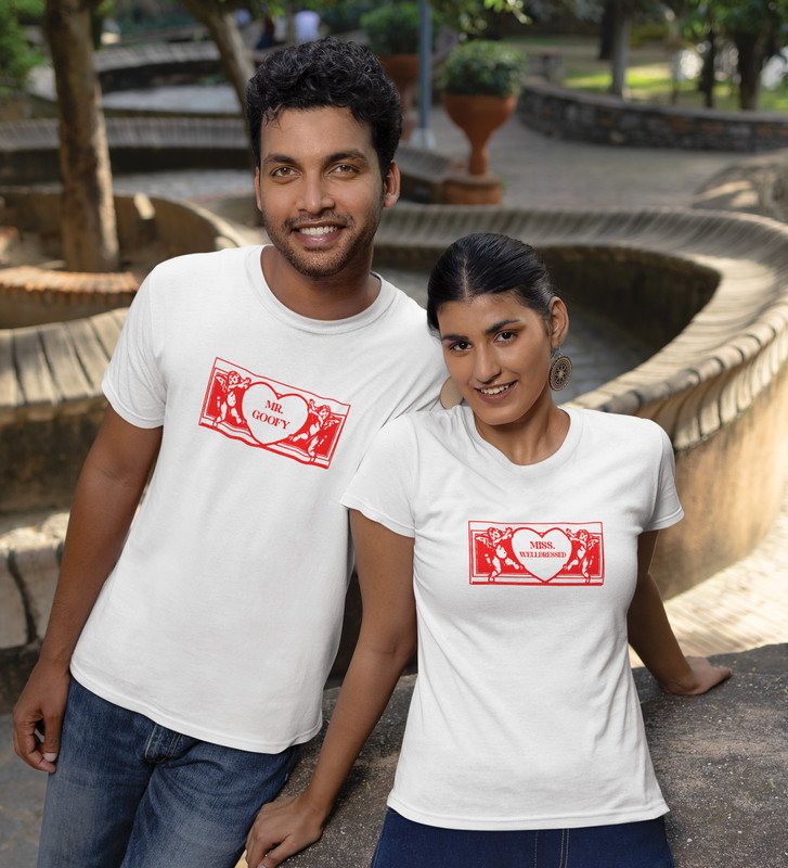 Mr Goofy/Mrs Well-Dressed Printed Couple (White) T-shirts