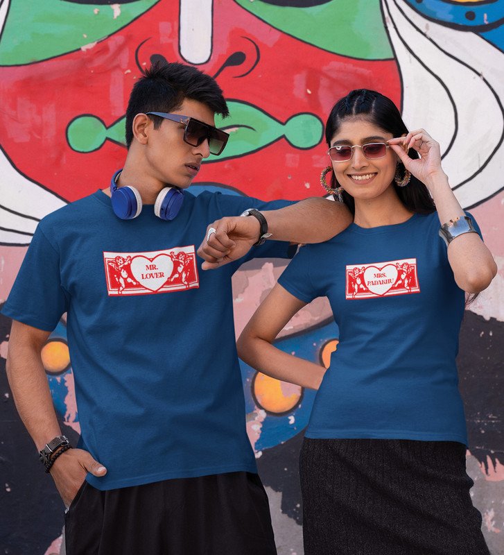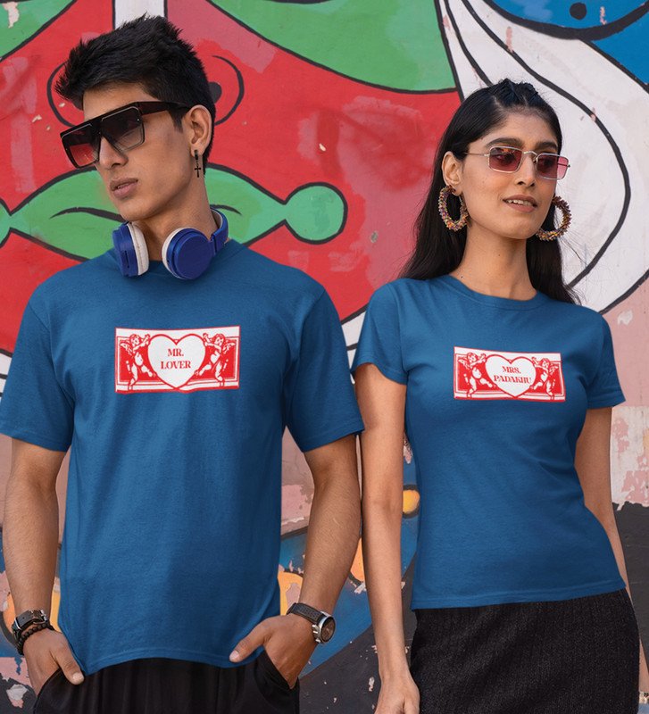 Mr Lover/Mrs Padhaku Printed Couple (blue) T-shirts
