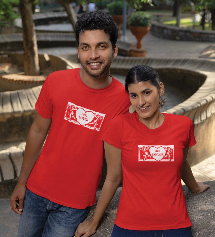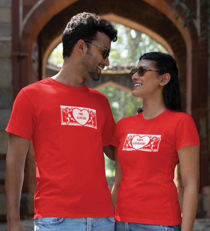 Mr Lover/Mrs Padhaku Printed Couple (Red) T-shirts