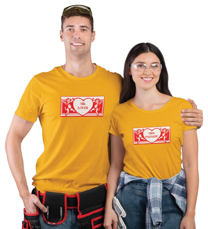 Mr Lover/Mrs Padhaku Printed Couple (Yellow) T-shirts
