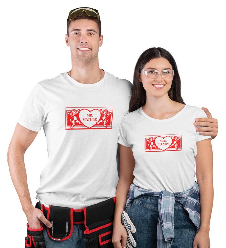 Mr Mature/Mrs Clumsy (White) T-shirts Printed For Couples