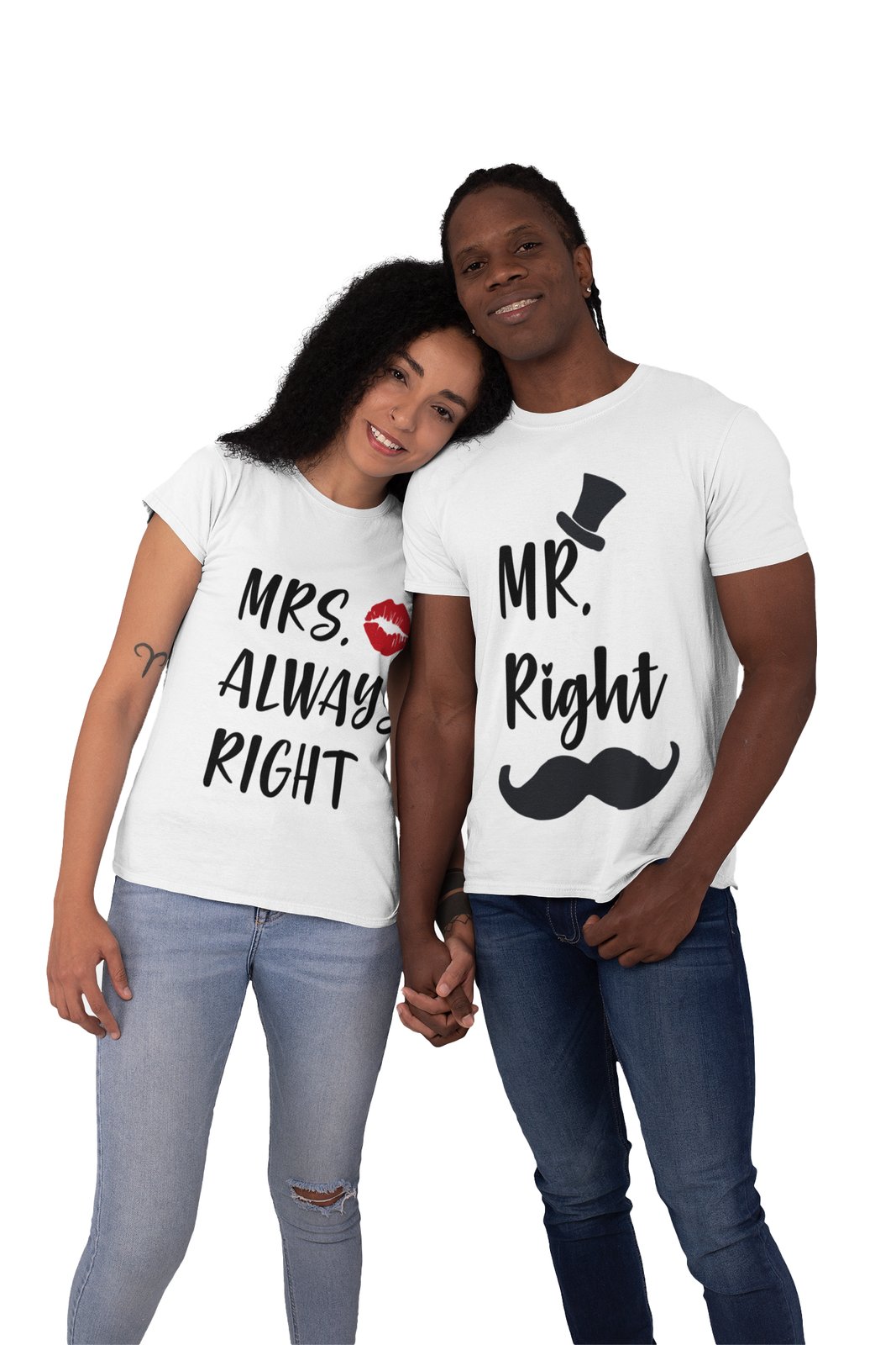 Mr. Right and Mrs. Always Right (White T)- CouplePrinted T-Shirts -Lover T-shirts